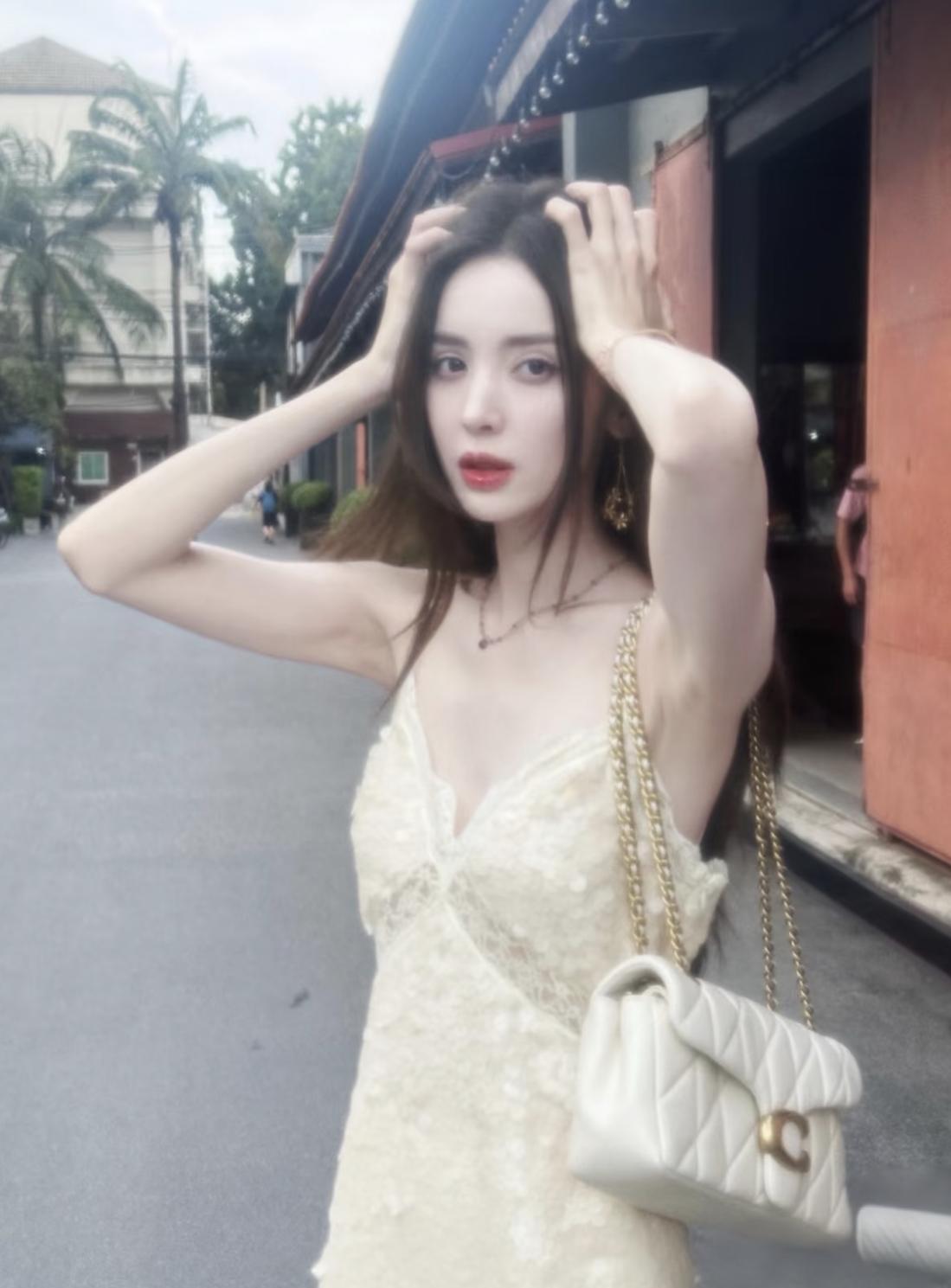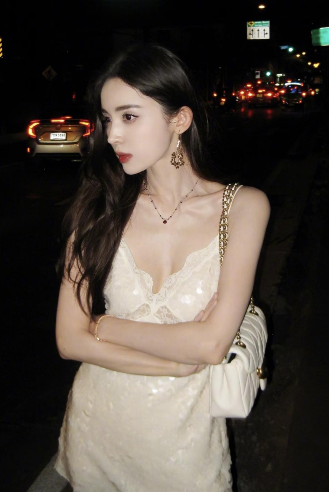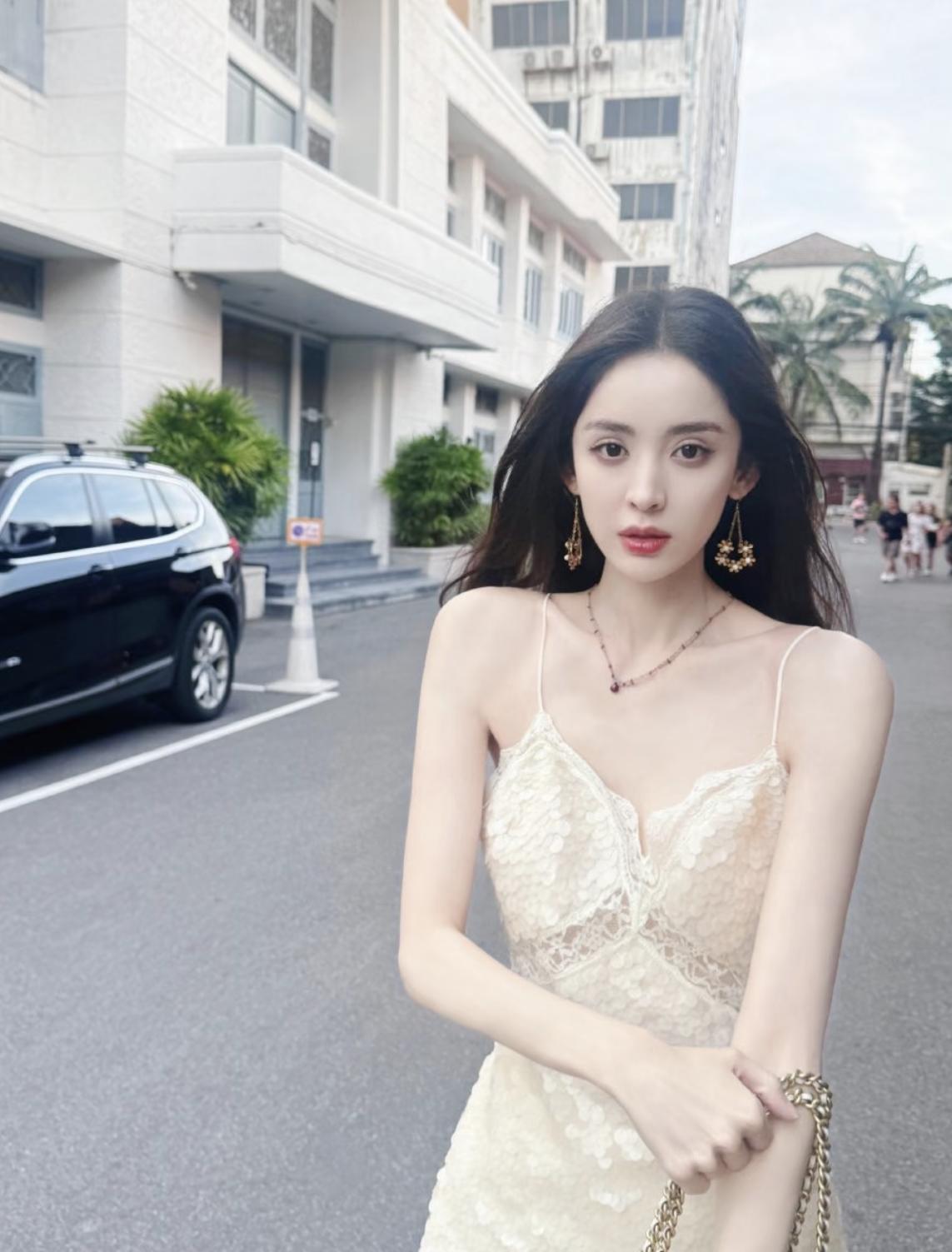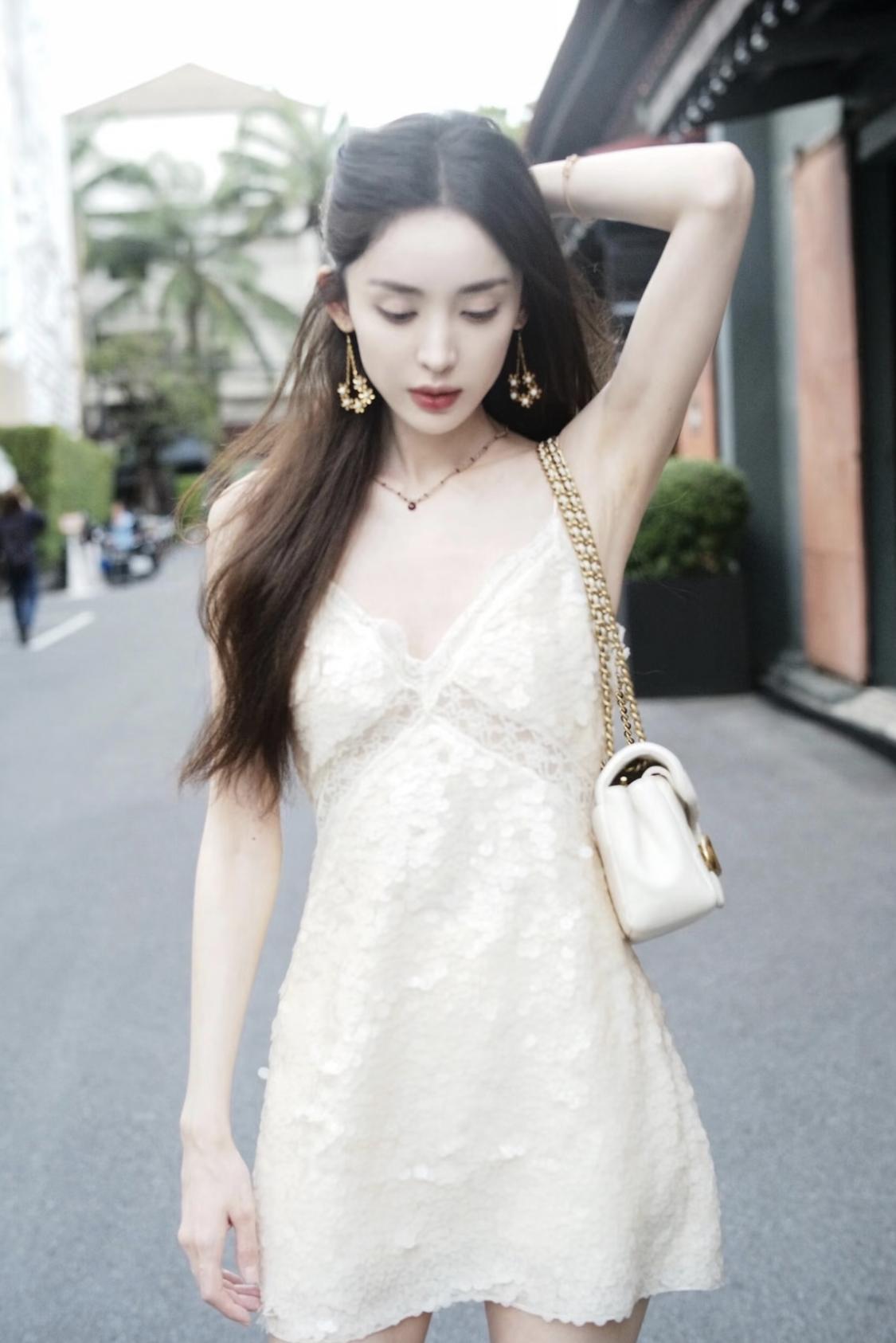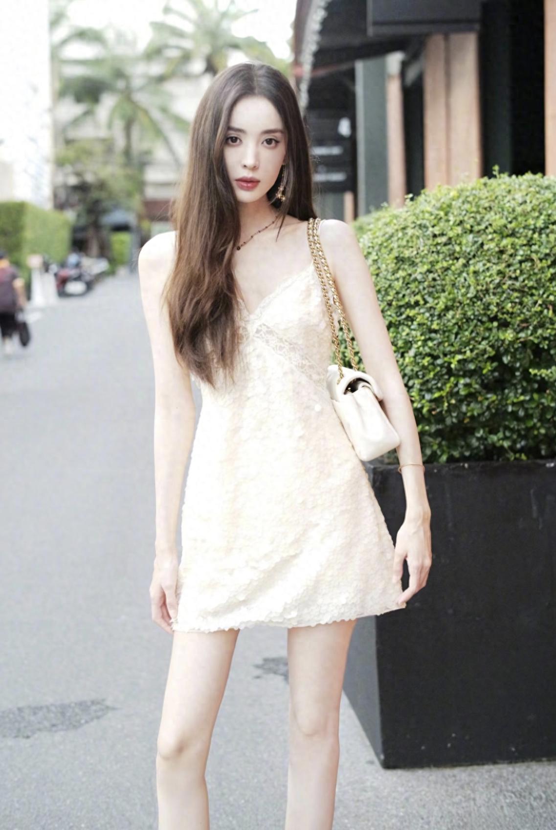 古力娜扎,白色吊带短裙,好甜好纯啊