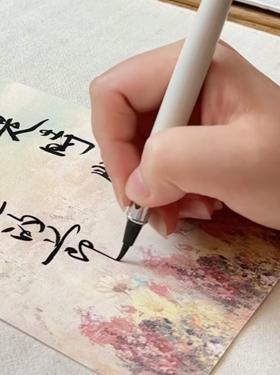 这支钢笔式毛笔,无需蘸墨,落笔即成字迹;写完盖上笔盖,亦无需清洗。笔杆的三面正姿握区,让执笔舒适,书写流畅。