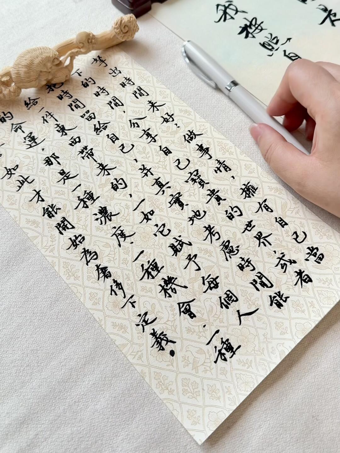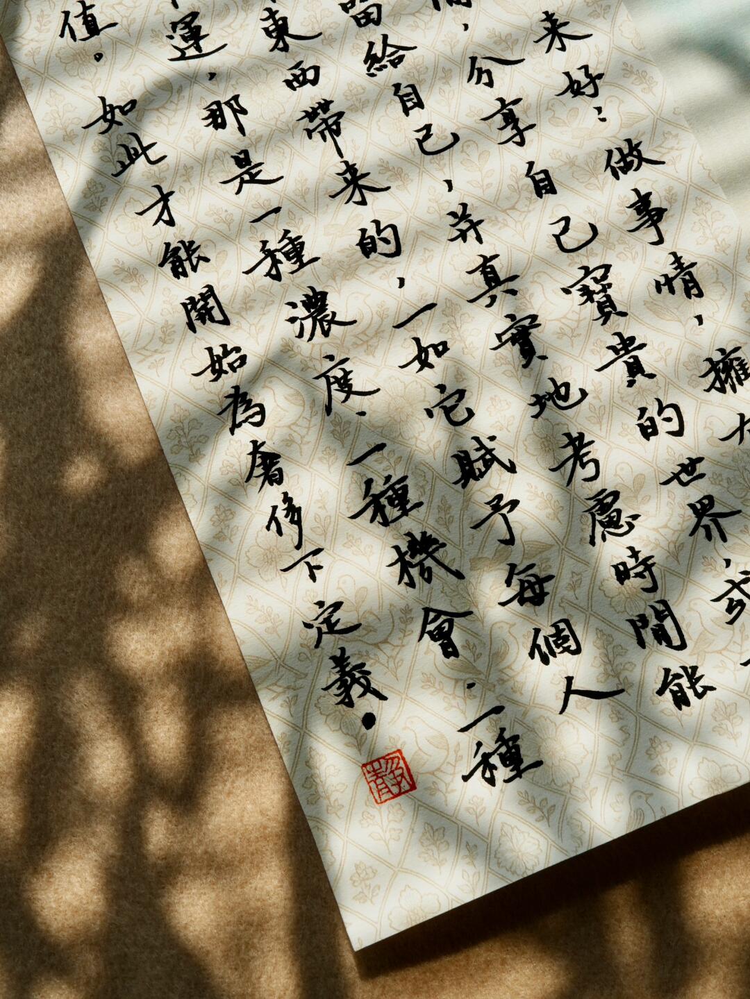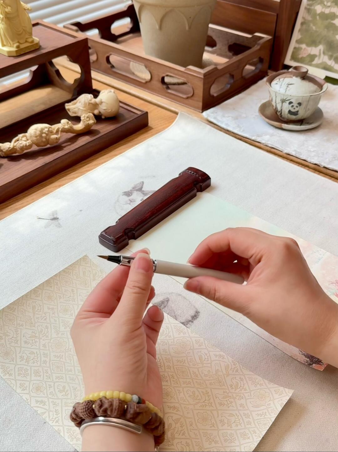 一张用心整理过的书桌,摊开的纸页,一支打开笔盖就能书写的毛笔,都能让浮躁的心沉静下来,回归专注。