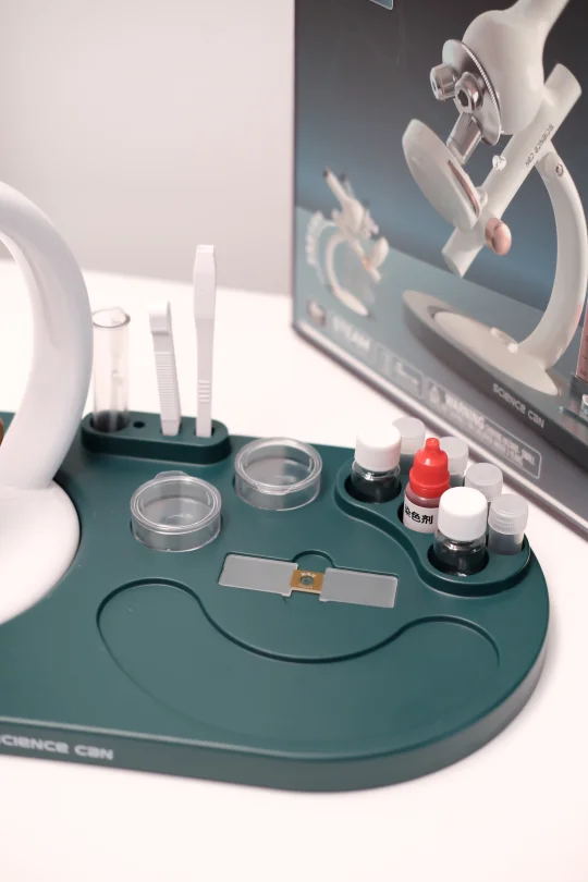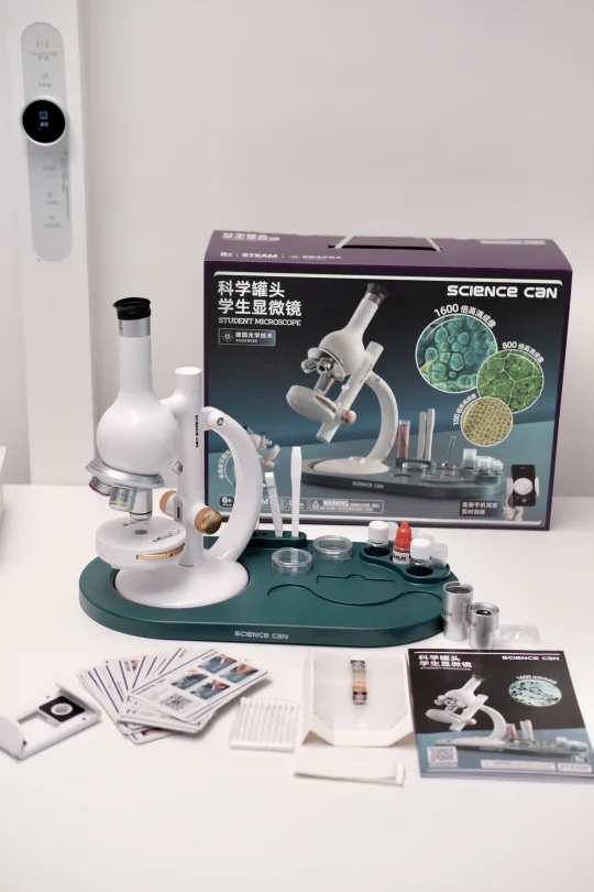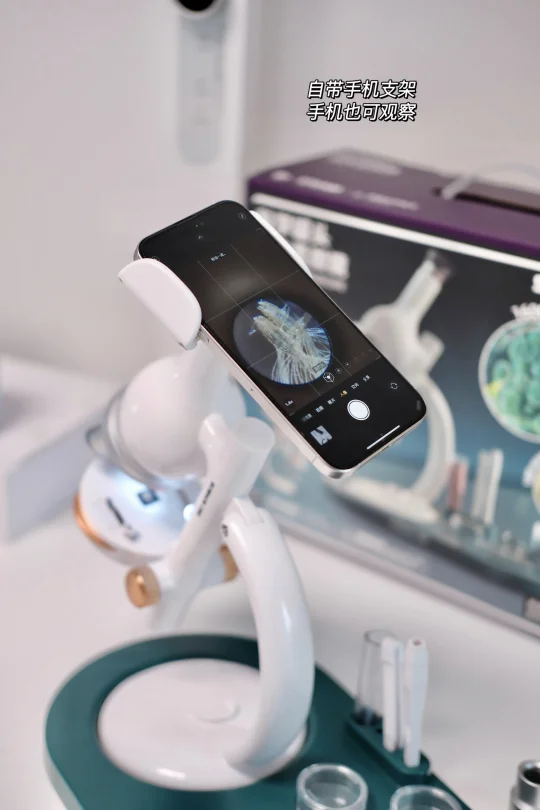 关键这显微镜真的顶!1600倍放大,细胞、细菌都能看得清清楚楚,小学玩到初中生物课完全没问题~还会跟我分享“妈妈你看,叶子里有好多小格子!”,这种对科学的好奇心也太让人惊喜了吧!