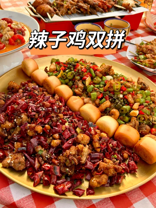 ⭐️辣子鸡双拼:分别用青红辣椒炒出的辣子鸡,能吃辣的一定要尝尝,下🍺好菜哦!