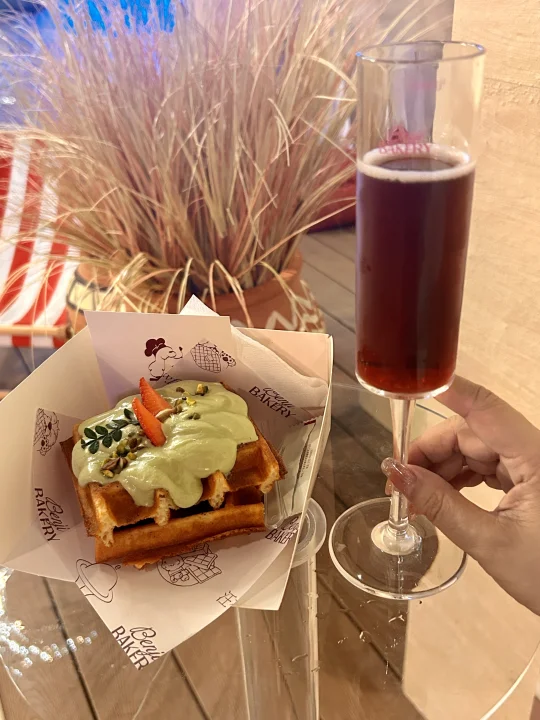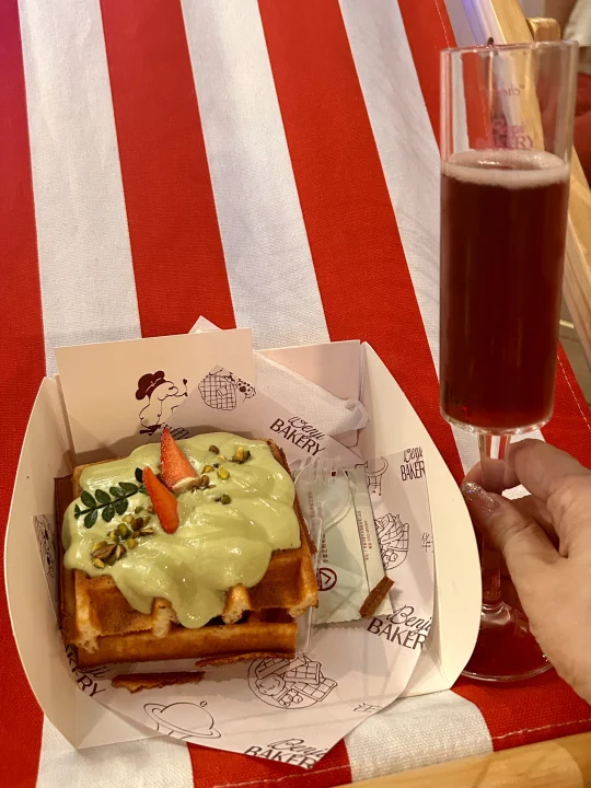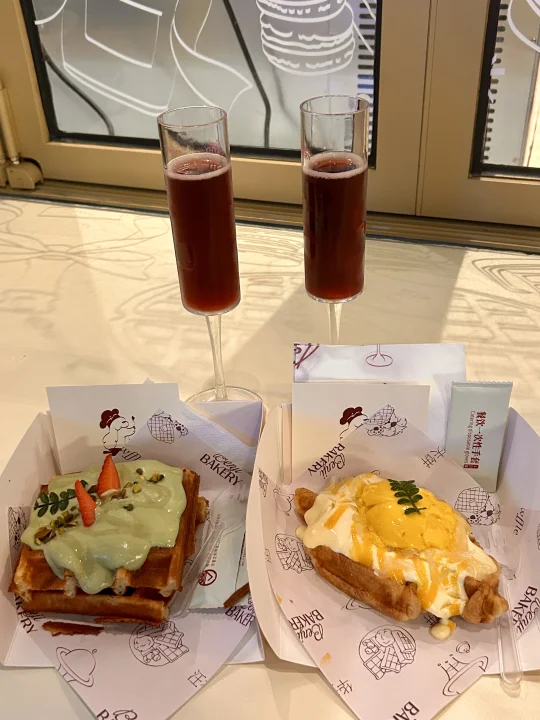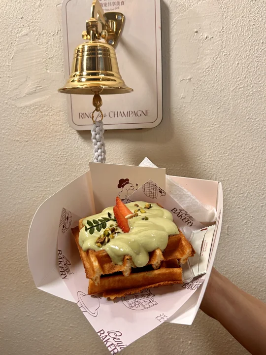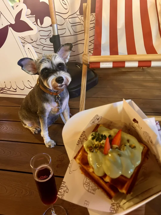 ⭐️招牌WOWffle-开心果奶油华夫:浓郁的开心果酱混合进口动物奶油,撒满焦糖开心果碎 ,加新鲜莓果 ,配搭香酥饱满的焦糖可颂华夫,是层次丰富的口感体验。 ⭐️起泡酒Sparkling Wine-意大利永恒之爱起泡酒2019:这是一款诠释了意大利浪漫与欢庆精神的起泡酒。2019年是一个优秀的年份,意味着成熟的葡萄和均衡的口感 ,使这款酒既适合即时饮用 ,也具备一定的陈年潜力。 将宠物友好贯彻到底,还有狗狗WOOffle-肉松汪福饼和狗狗香槟🍾赶紧带上你家狗狗🐶过来看表演➕吃大餐吧!