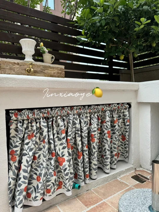 这不是在意大利阿马尔菲海岸, 这是山东 我们业主家的院子里, 小柿子花布做的遮挡帘别有一番味道, 午后,嗅着柠檬香气在庭院里格外惬意 …