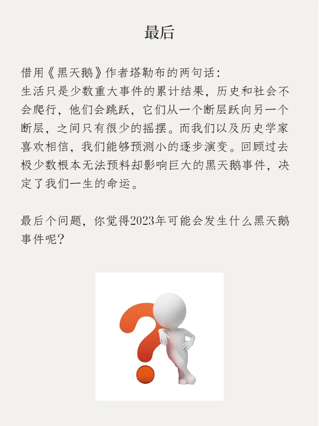 就像17世纪的欧洲人认为,世界上的天鹅都是白色的,直到澳大利亚的黑天鹅出现后,这个强大的信念才被打破。由此黑天鹅也变成了不吉祥的象征。