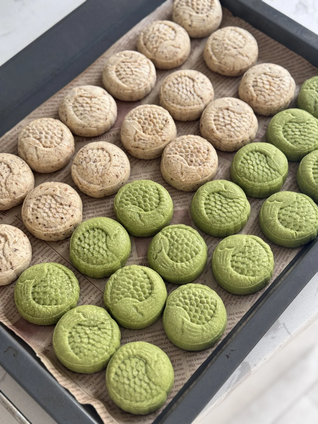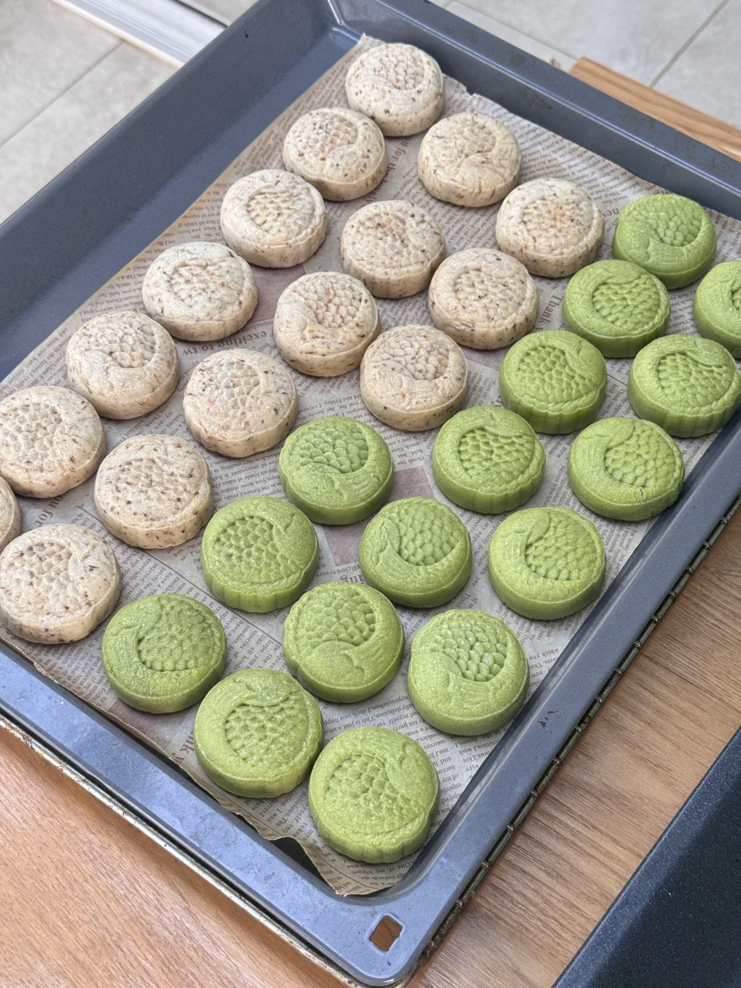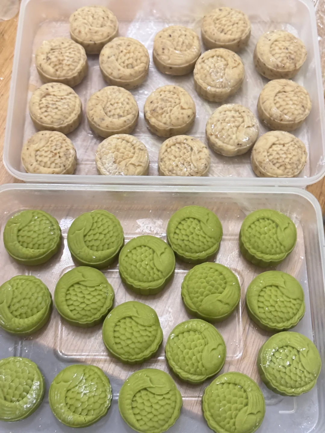 前几天在上班的地方用流心模具冻的都冻不硬 做出来的流心月饼一直翻车 不信邪的我休息日在家又做了一次 流心模具忘带回家,就用小冰格冻的流心 零下22度一开,三小时冻的硬邦邦, 那一刻就知道肯定成功[哇R] 果然今天烤的超级好呀~开心 不用怀疑自己的烘焙水平了[吐舌头H]