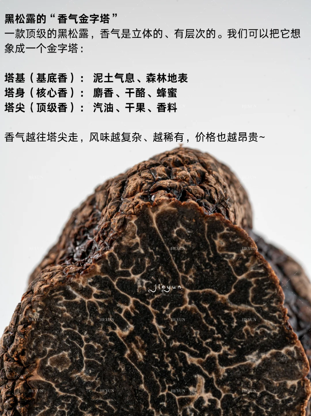一款顶级的黑松露,香气是立体的、有层次的。我们可以把它想象成一个金字塔: