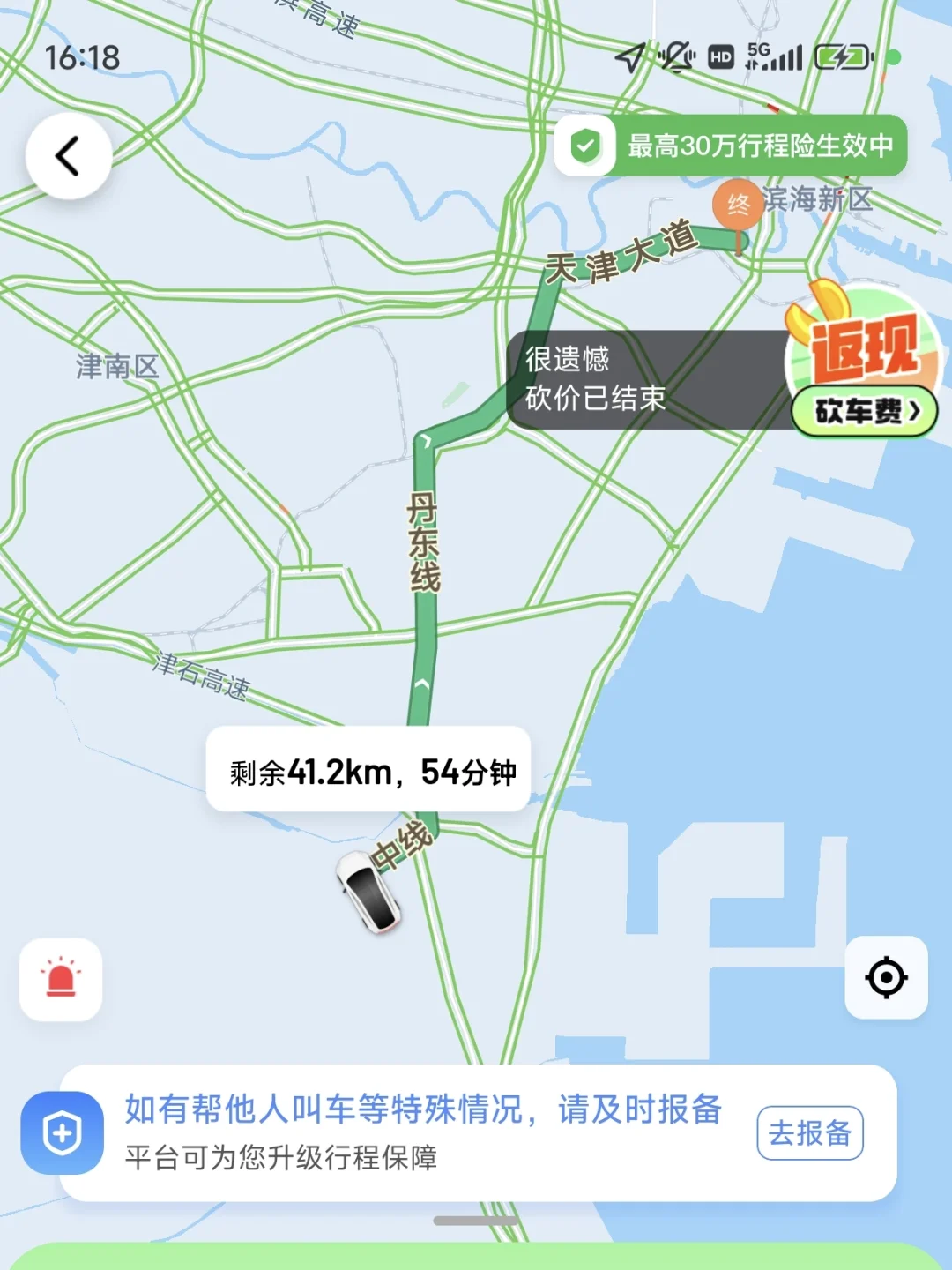 下午2点多到天津河西区,第4个人下了;3点多到津南,第3个人下了;4点15到大港第1个人下了,然后司机问我能不能关空调,因为电不够了;最后终于,17:09,到滨海站我的目的地了。