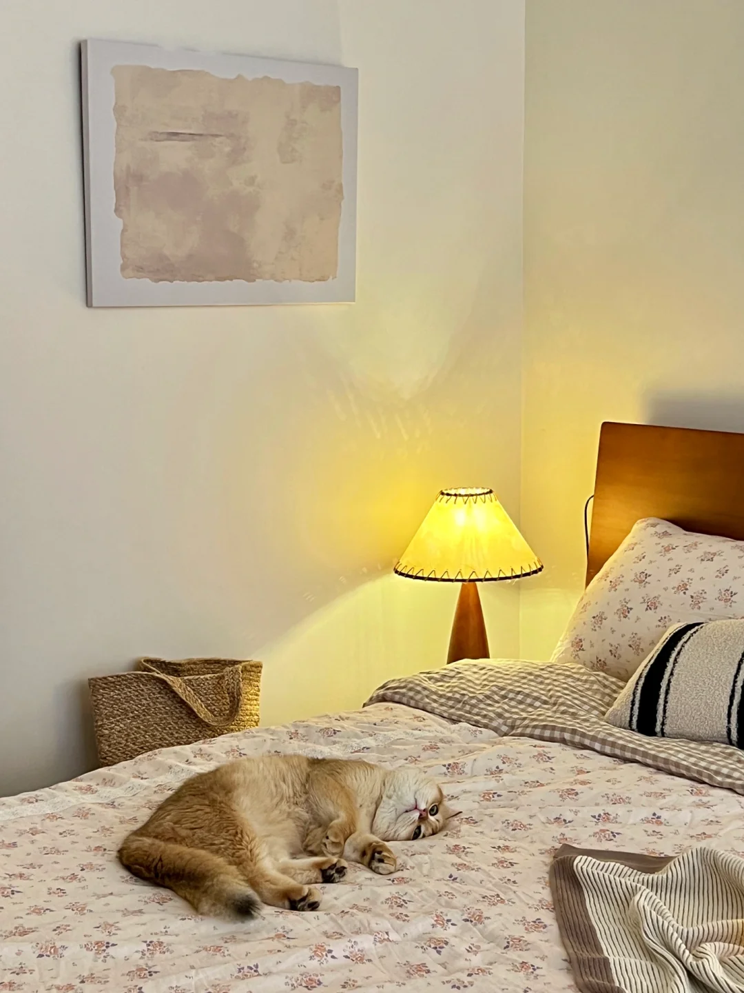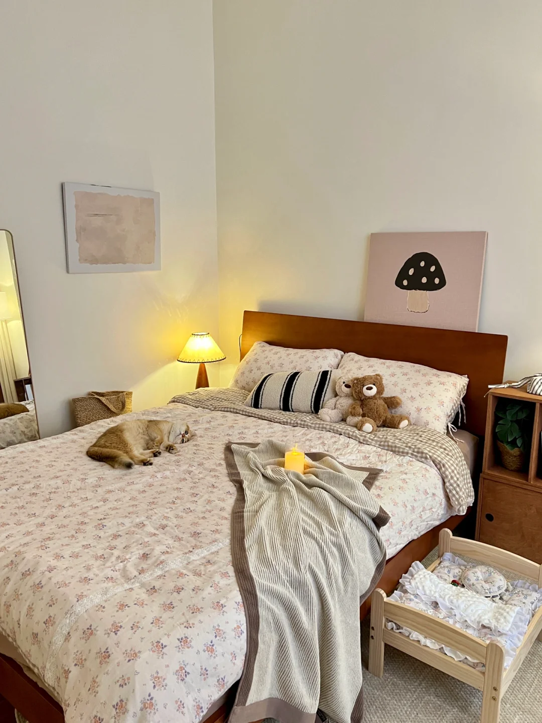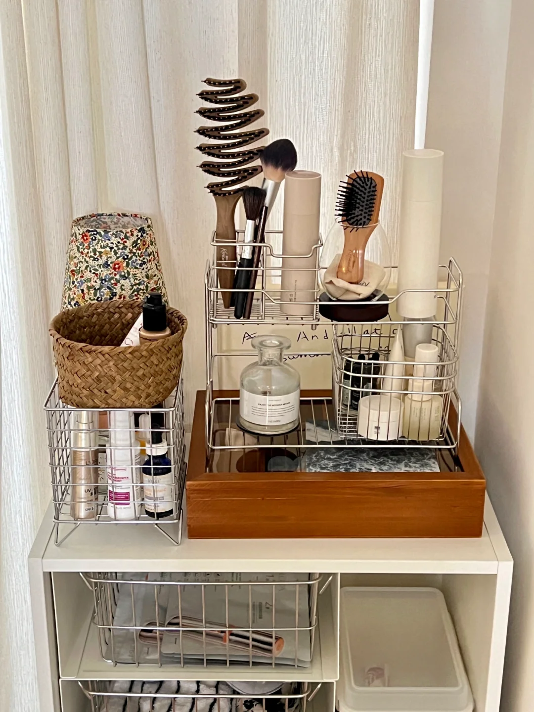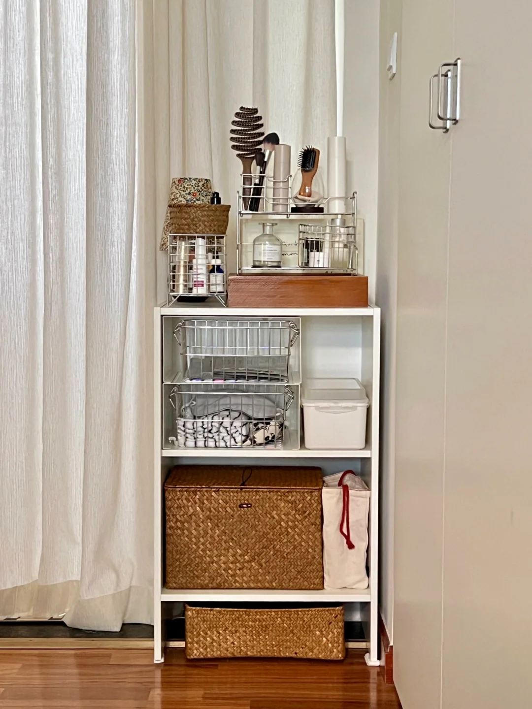 邻居说你真的好会改造! 不动硬装竟然可以把房间改成这样!太牛了吧✨ 我真的有改造超能力吧~阳台灰色丑丑的地砖,我定了块复古地垫,跟房间很搭,小小的复古感🍃 没有化妆桌,我就用50元的小柜子布置了一个护肤区,干干净净,放满了我的宝贝🌟 阳台空着,放了个衣架做次净衣区,隔夜衣服也有位置啦。 全靠软装的房间,你觉得还算ok吗💓