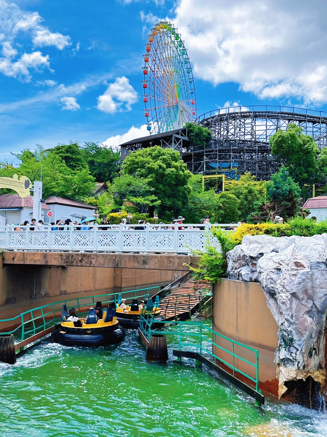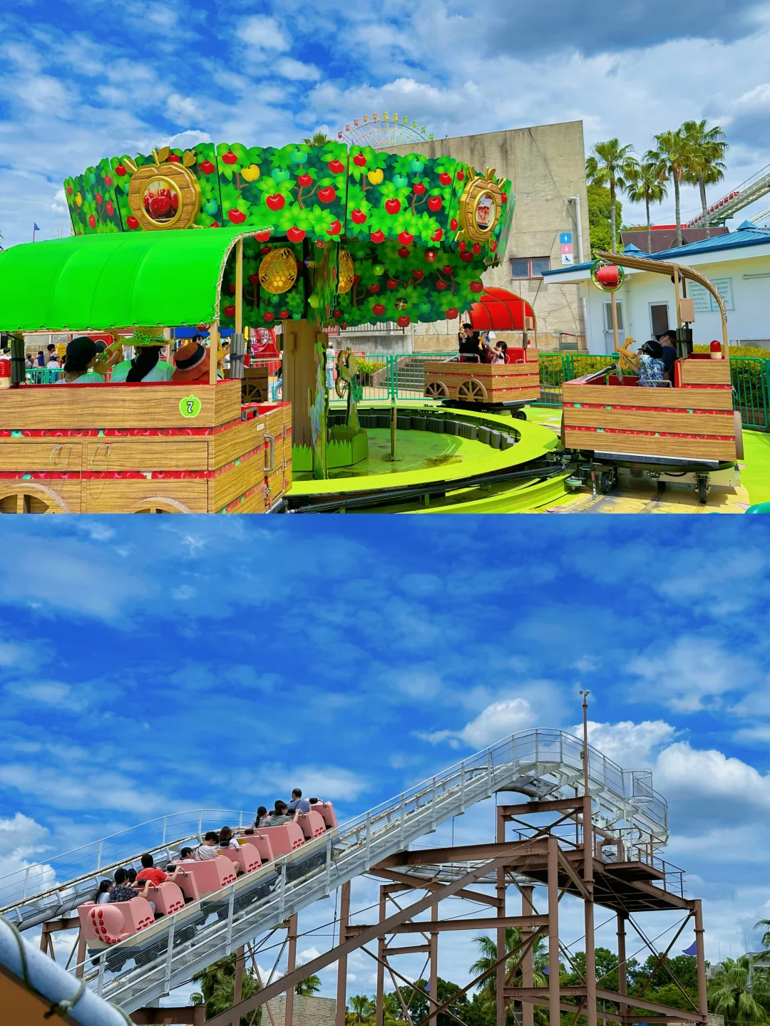 除此之外,乐园还有激流勇进、漂流船、一座巨型的摩天轮等经典项目。还能看到比如“射苹果”“天星小马”在内很多日式风格的游乐项目。虽然不是一座全球性质的招牌主题乐园,但是想要感受很本土的日本游乐园,我是真的很推荐枚方公园。