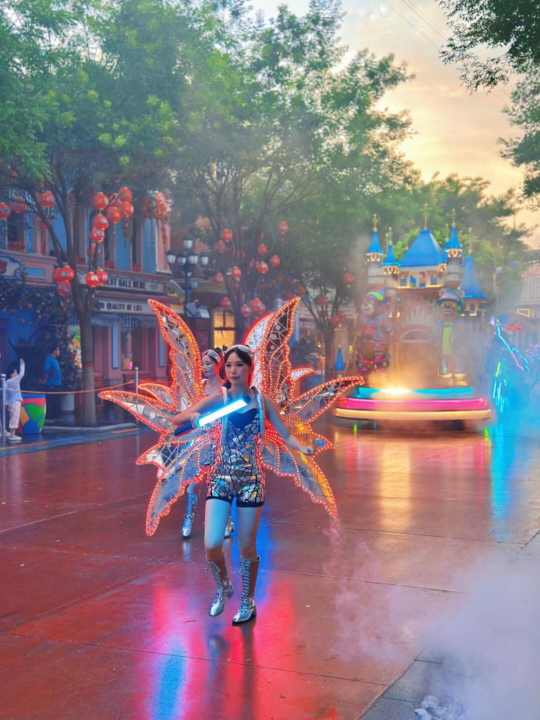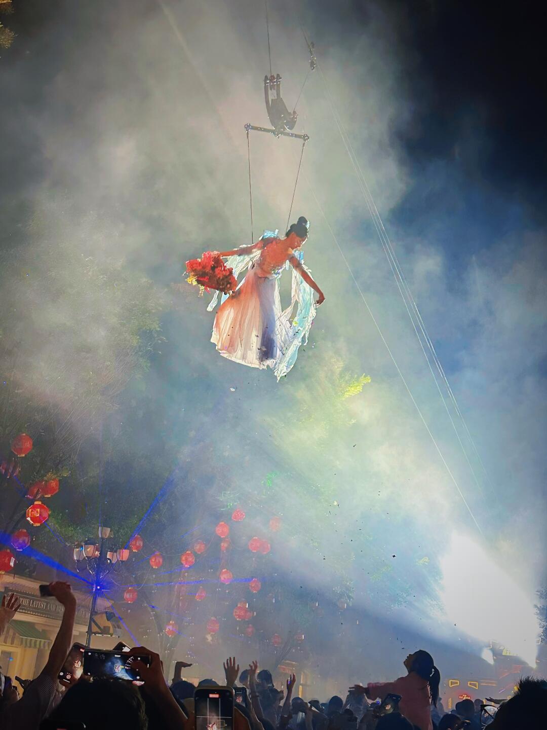 🌟飞天绮梦烟花秀:乐园一天中最重要的活动!绚烂的夜间烟火秀配上激光与霓虹,还有飞天仙女撒花,把一天的氛围推向高潮。