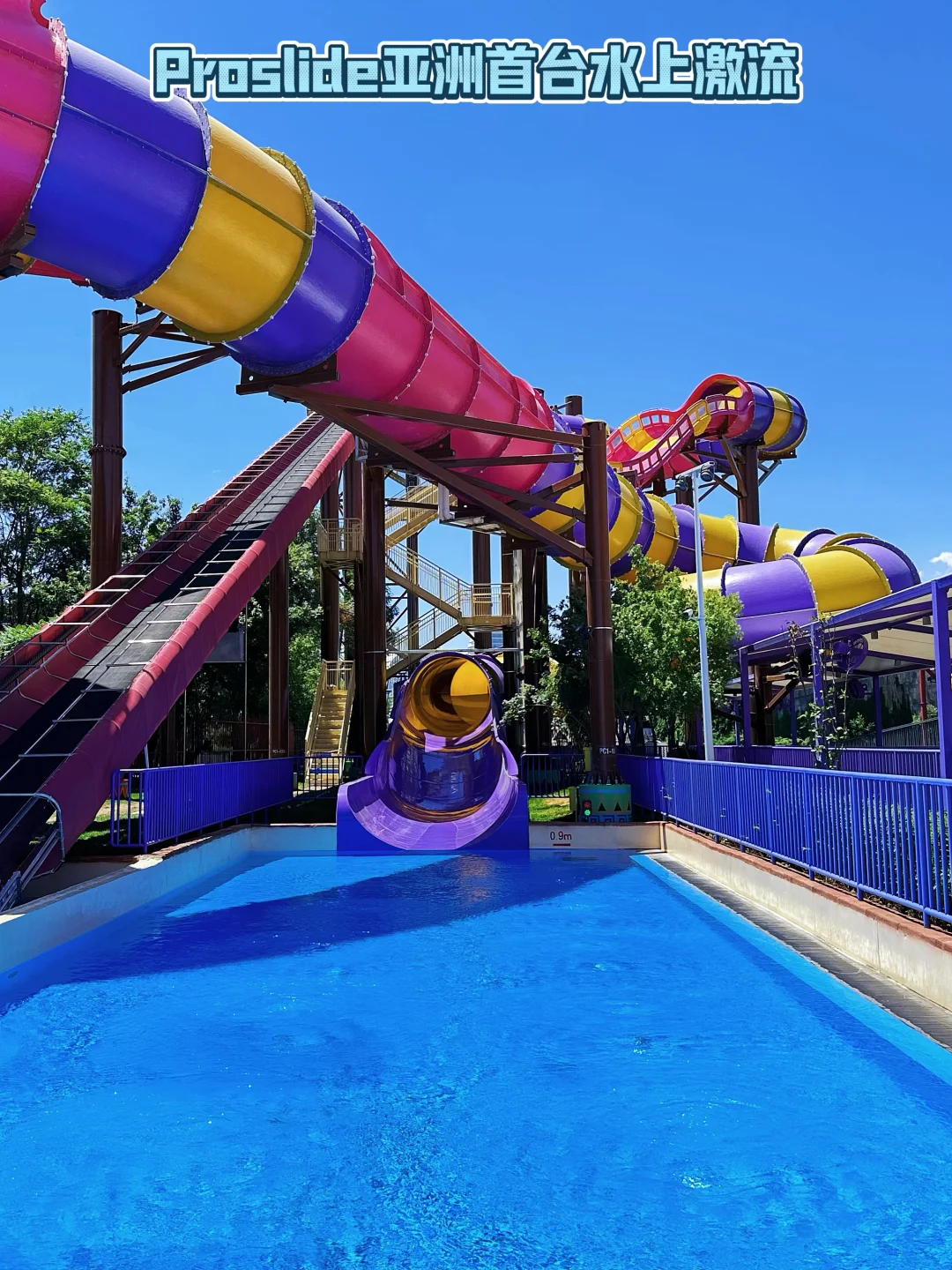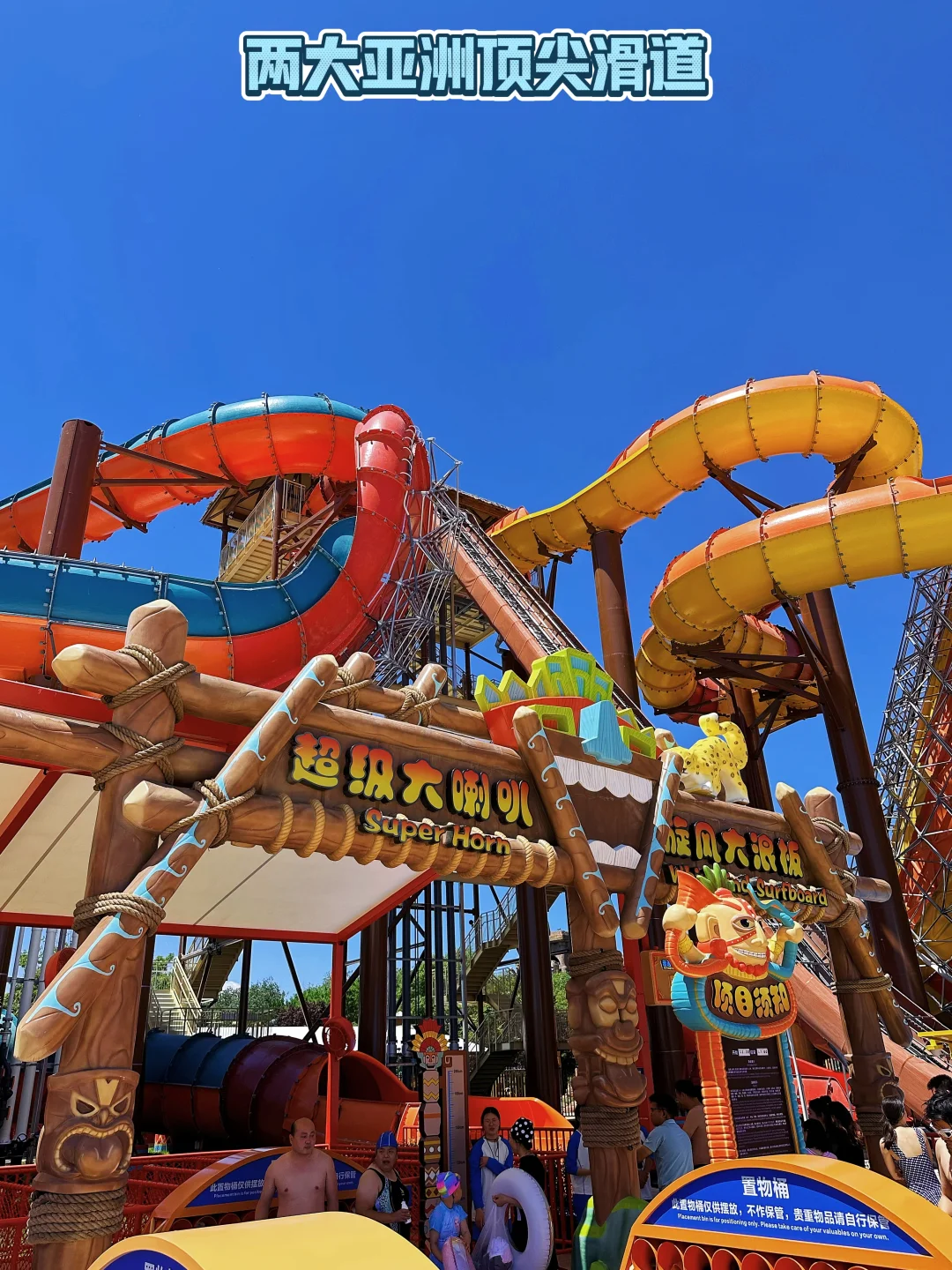 13条水上滑道足够玩一整天!进门先冲亚洲Top级别的「水上风暴过山车」「旋风大浪板」和「超级大喇叭」。这三个是乐园的排队王。