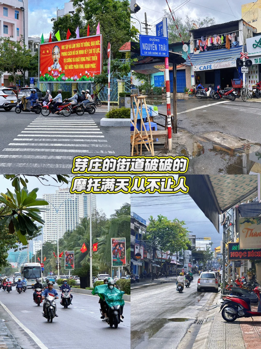 这里说的乱不是危险,是基建和旅游配套设施都不太完善。首先芽庄是越南海滨度假胜地,哪怕是市区的路也非常狭窄,而且满地的大坑、电线杆、障碍物…拖着箱子走格外艰难。路上的摩托车巨多巨吵,按喇叭从不停。完全不会礼让行人。这也让我们每次过马路都格外紧张…