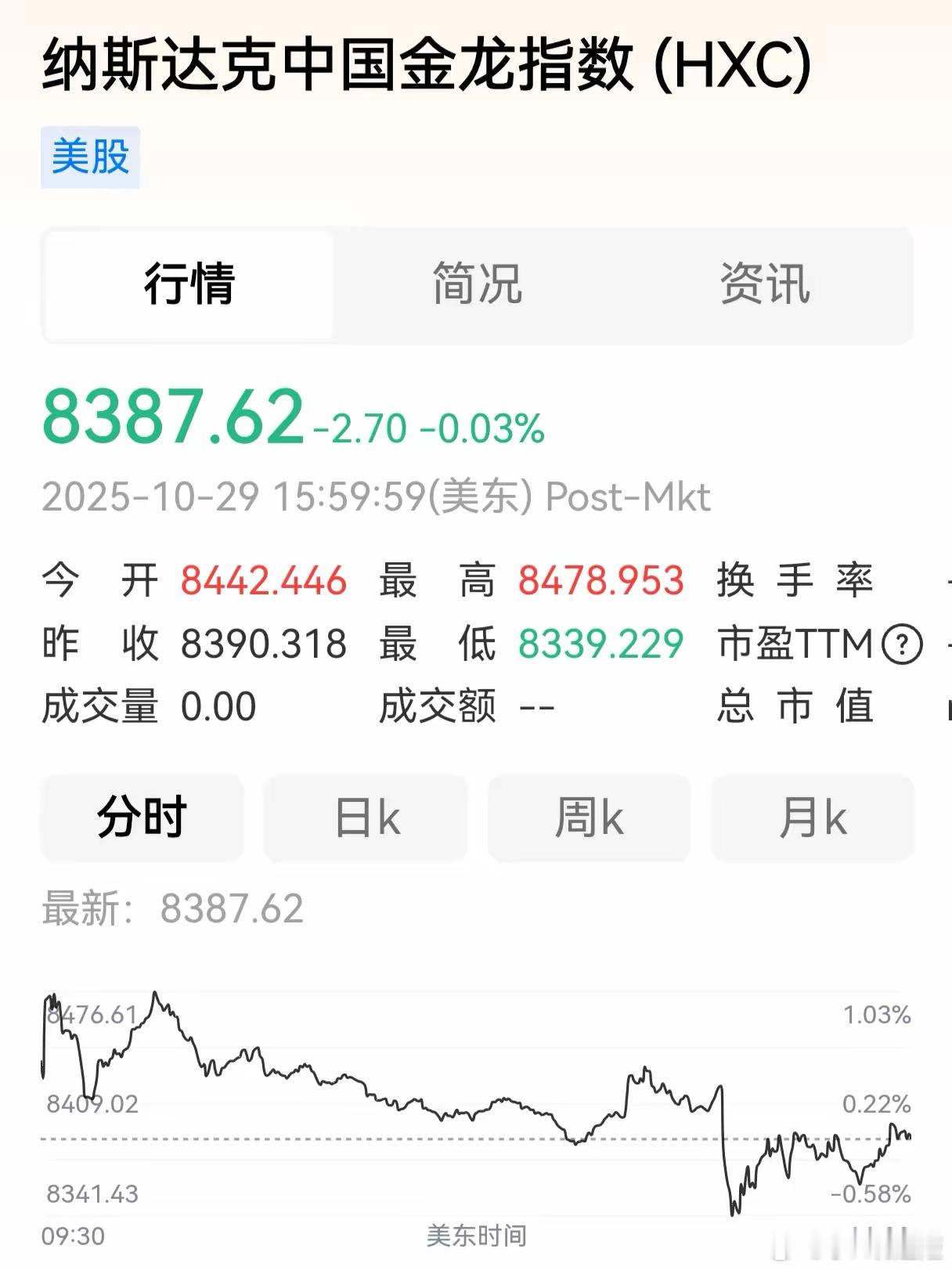 随着美联储公布降息决议后,原本涨得好好的美股三大指数随即跳涨后下跌,直至收盘,纳指收涨0.55%,标普500持平,道指下跌0.16%;不仅如此,连纳指中国金龙也被殃及,微跌0.03%。