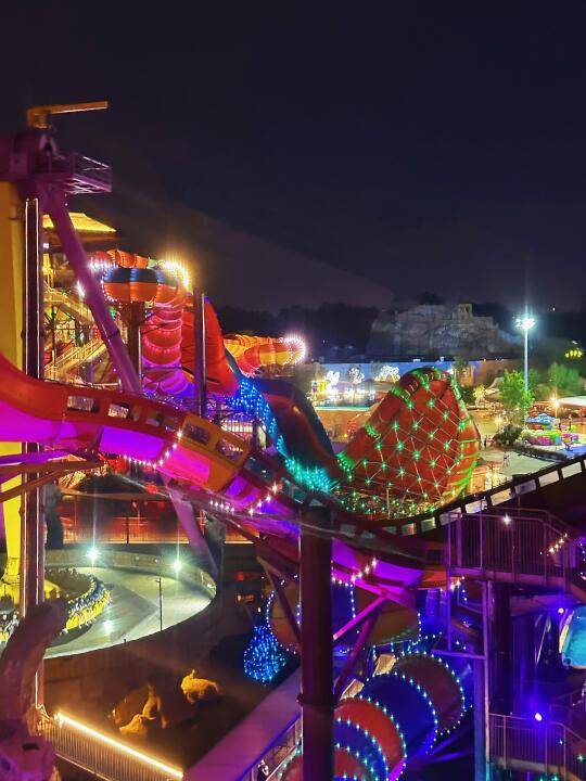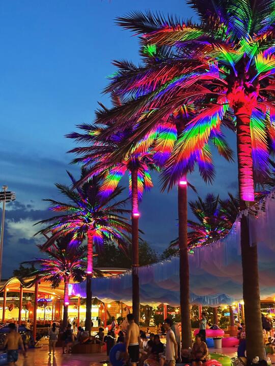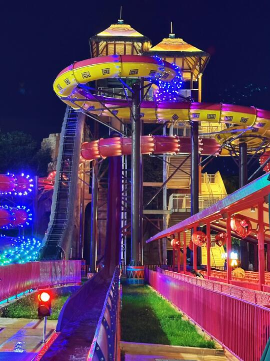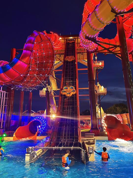 这里不光有十几条水上滑道,超大的造浪池和漂流河,而且夜场霓虹亮起,所有水滑道依旧开放到晚上10点!除了玩水的滑道,今年还花大价钱打造了水上荧幕激光秀,水上飞人、水上电音派对等等适合夏夜玩水的活动。