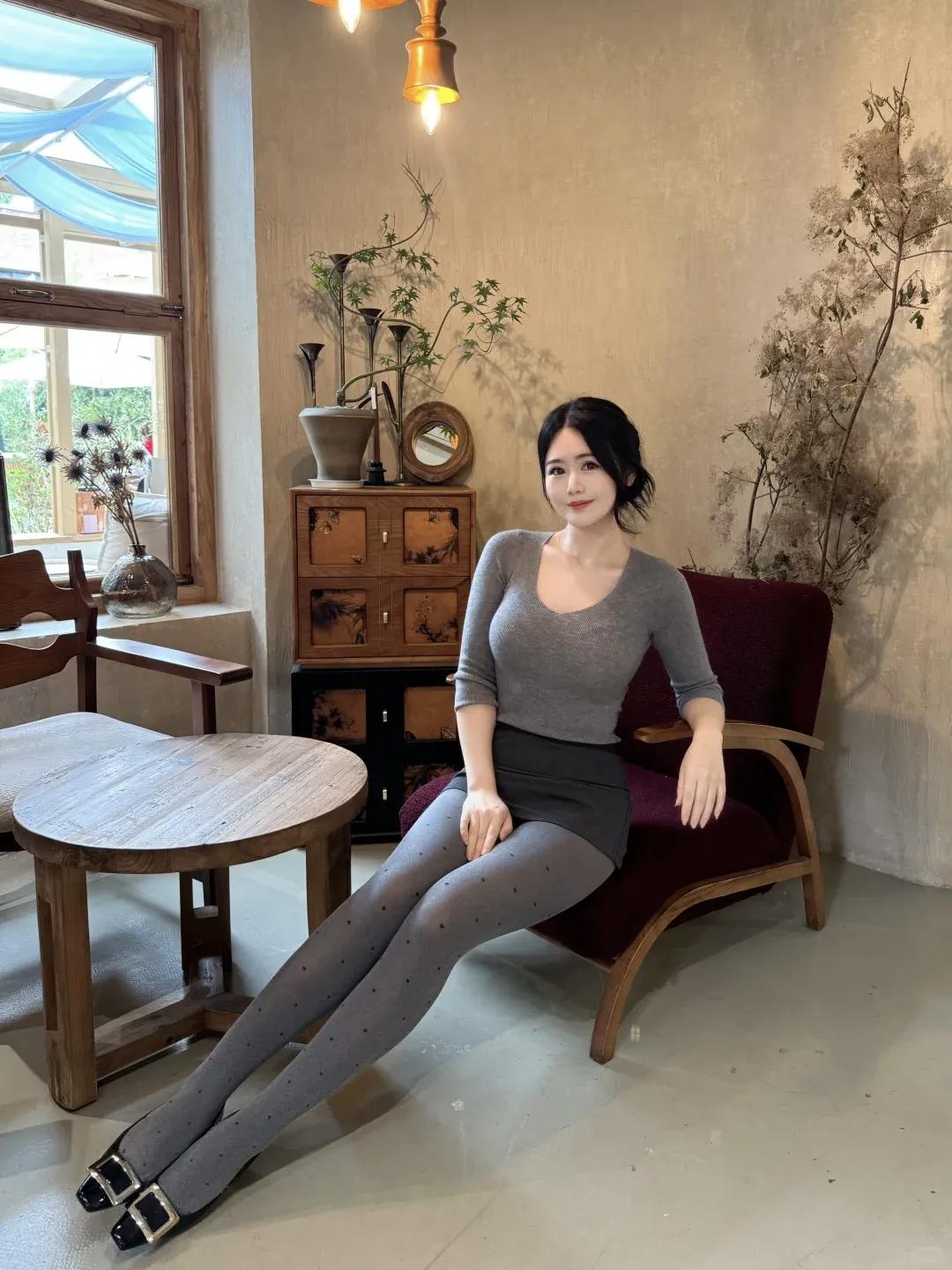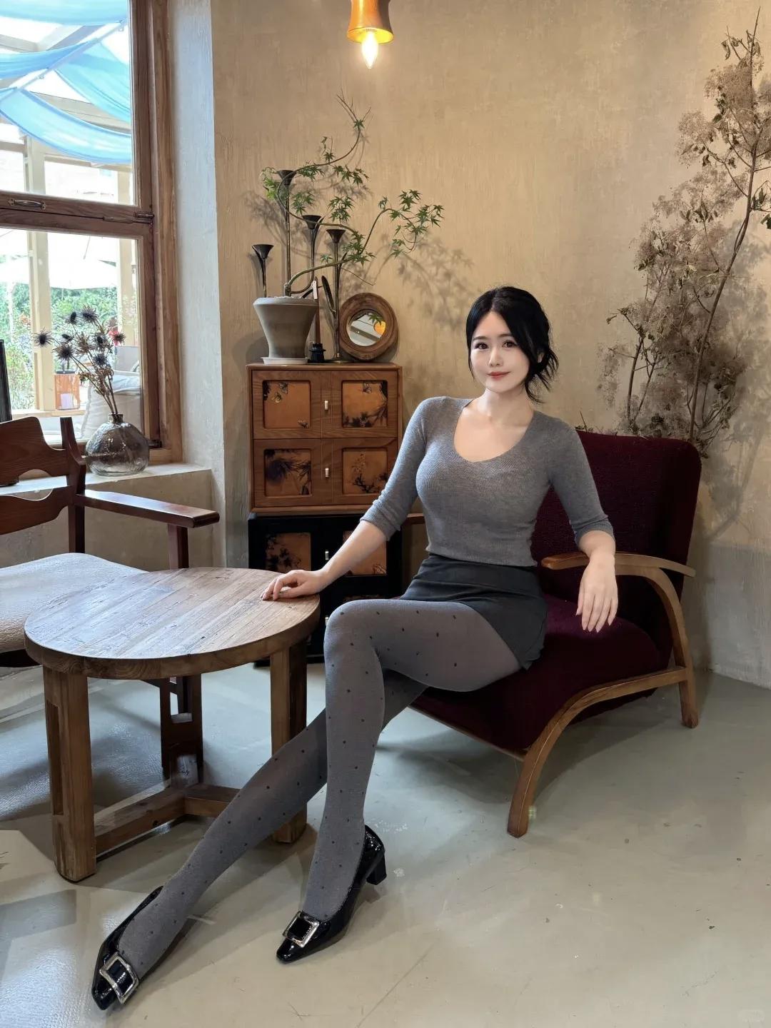 优雅气质穿搭,灰色毛衣搭配黑色高跟鞋,尽显都市女性魅力。