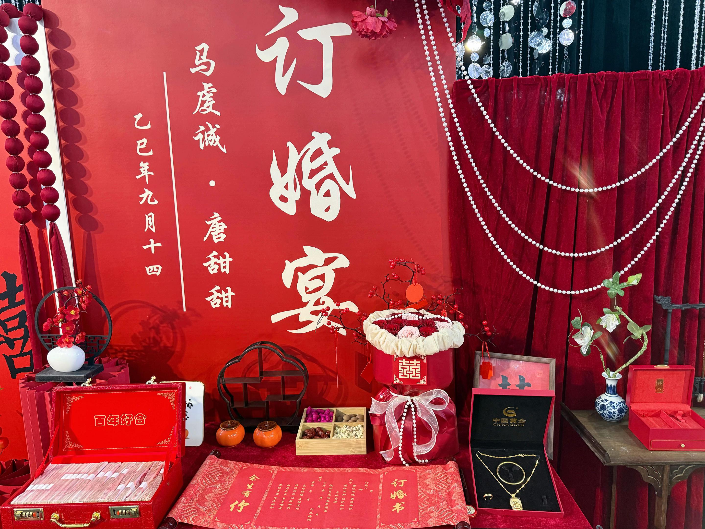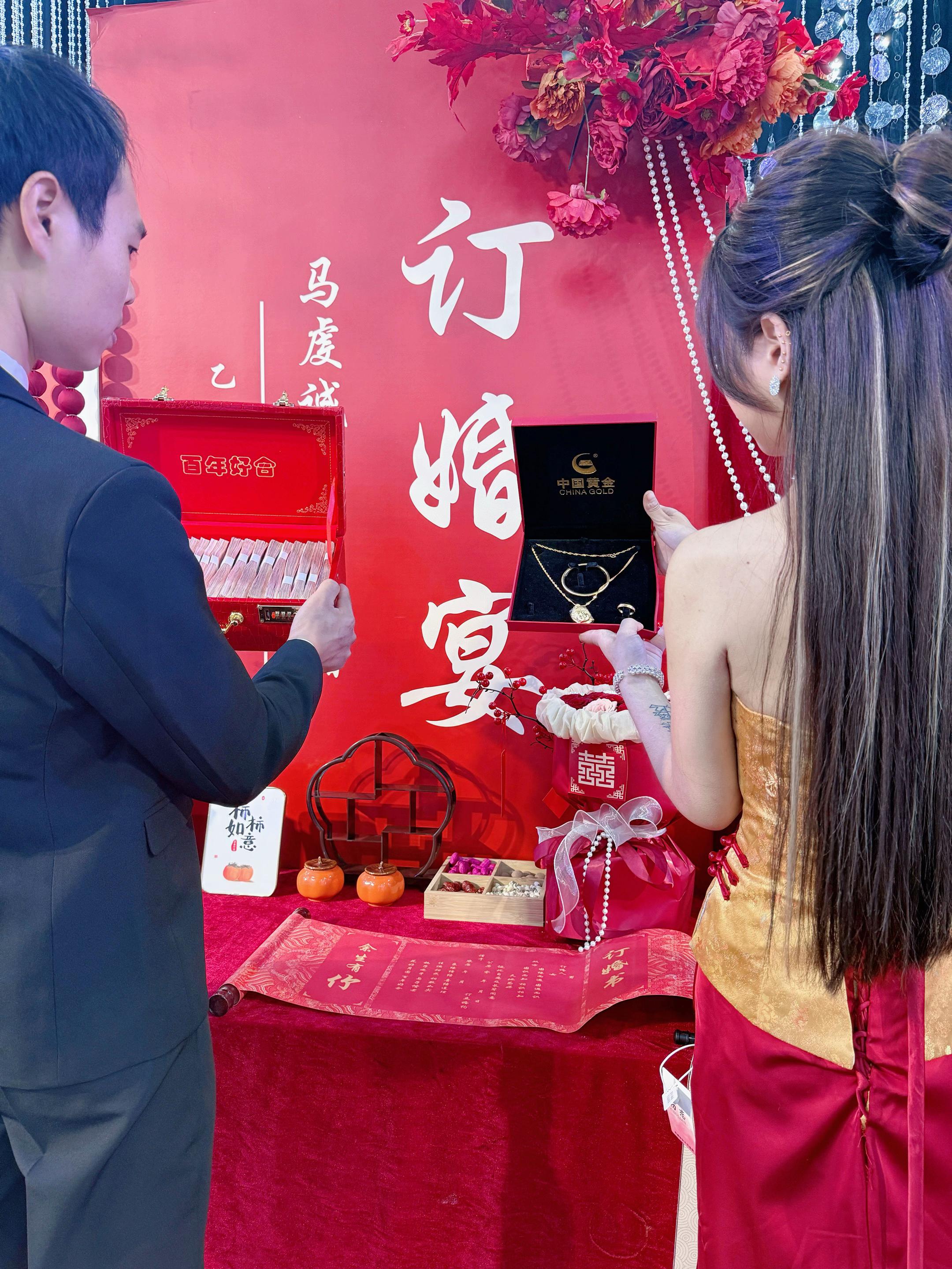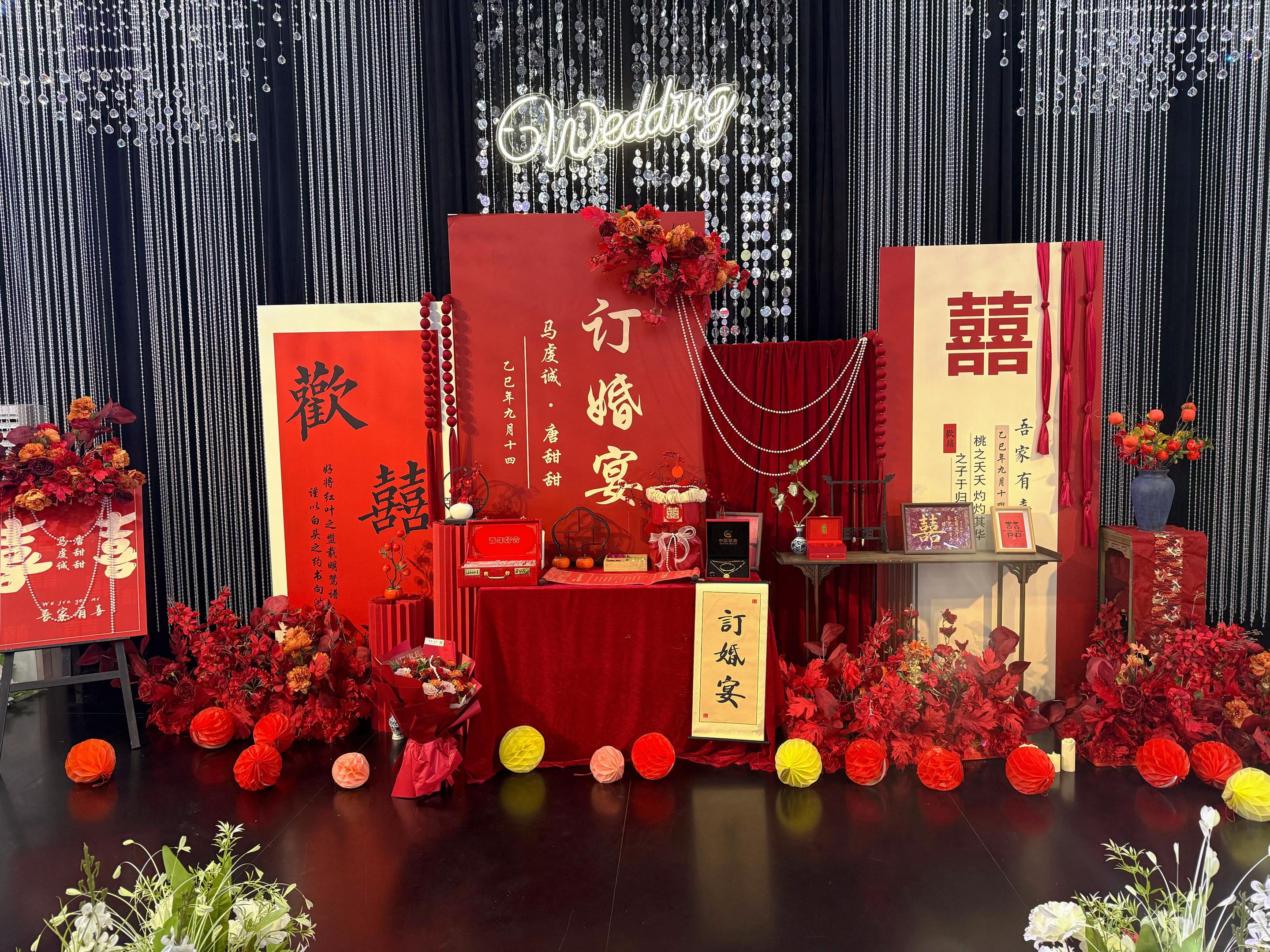 订婚快乐,感恩家人,长路携手,岁月悠悠。两姓订婚之囍,爱意公之于众。