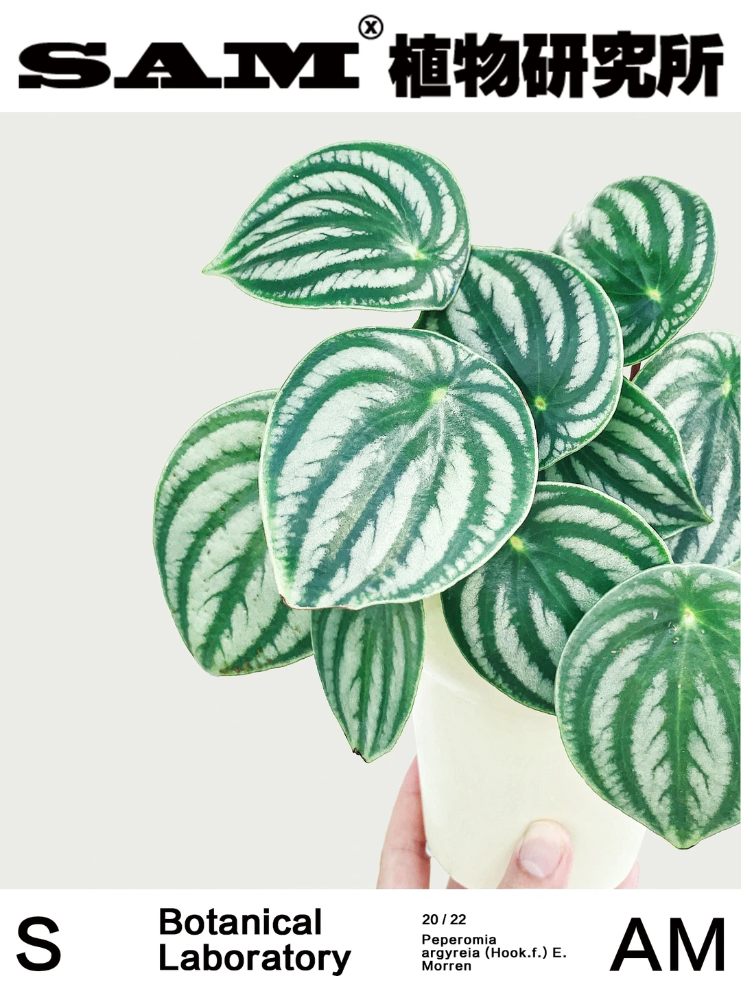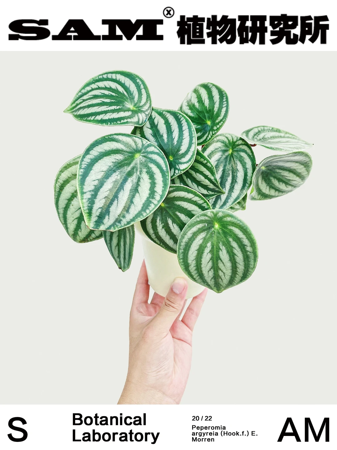 💚Tips:最近各地天气开始回暖,夏天也要来啦,今天SAM就给大家介绍一种自带清凉感属性的绿色植物—西瓜皮椒草,为什么说它自带清凉属性呢,主要是因其叶片上的纹理像极了炎炎夏日的避暑水果“西瓜”,浑圆的叶形也十分可爱,银色的斑纹在日光下闪闪发光,触感呢也非常像西瓜皮,皮质厚实。西瓜皮椒草丛生的时候,像一片片小西瓜挂在盆上,趣味性和观赏性俱佳。养护方面,也非常新手友好,皮实耐养,很省心。