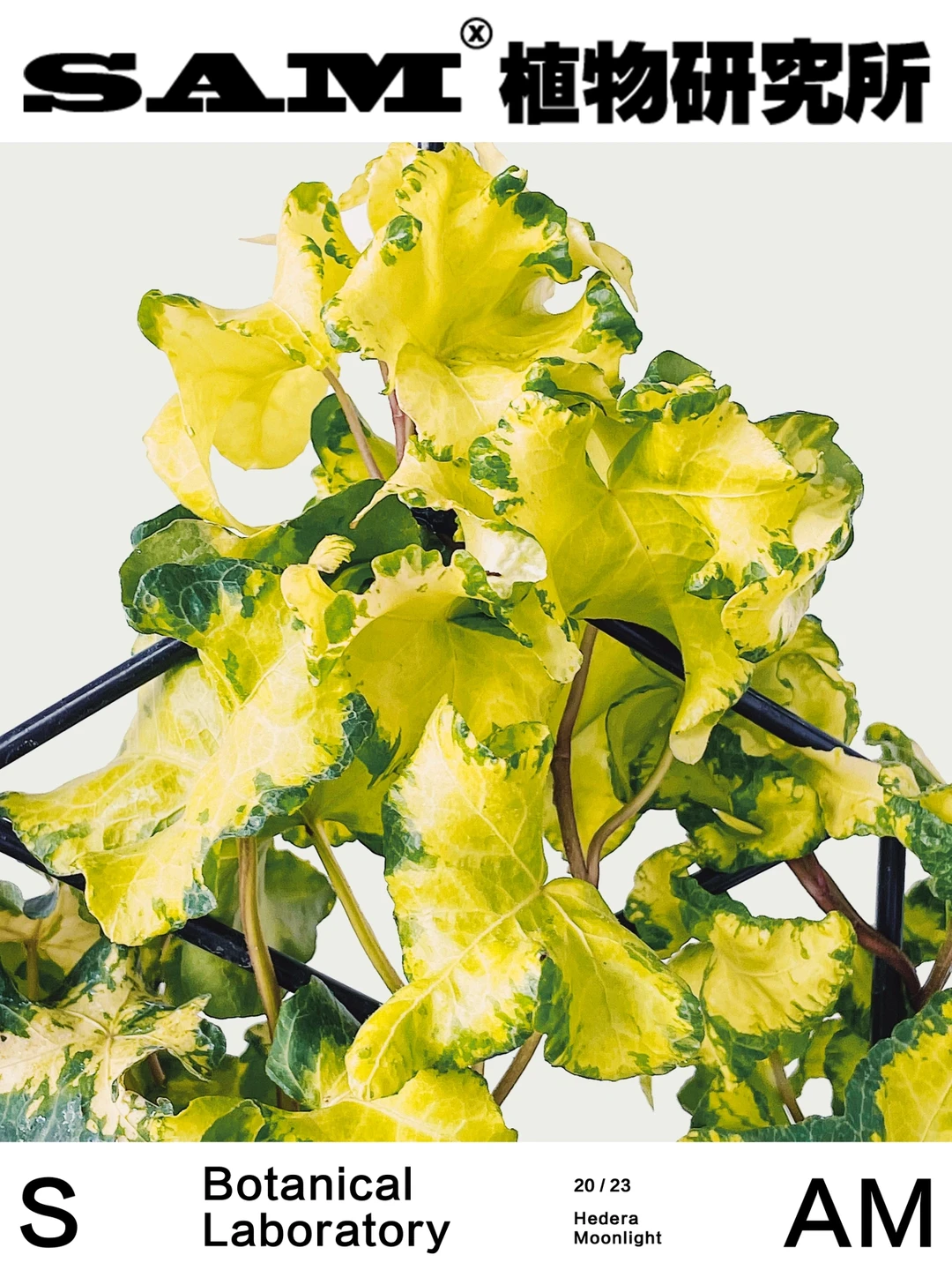 💚Tips:常春藤是一种神奇的常绿藤本植物。为什么说神奇呢?首先,常绿的状态预示春日永驻,象征忠诚、不朽、永恒、青春、挚友之意。其次,十六世纪以前的英国,常用常春藤来酿酒,把它混在麦子里,会使麦子酿成啤酒,所以,常春藤的花语也有感化的意思。除此之外,希腊神话里,则用它来代表酒神Dionysus,象征欢乐与活力。而SAM今天分享的这款“月光灯”常青藤,是日本进口的园艺种,卷曲的叶形自由洒脱,黄绿色略带荧光的视觉效果光环加持,自带聚光灯,宛如“月光女神”,将暗夜点亮。最重要的是常青藤百变的造型,可以凹出各种你喜欢的形态,也可以使用各式各样的支撑杆帮助植物攀援,更好的开枝散叶。SAM搭配的帝罗马橄榄枝手工盆和蜂巢支架,也是想要展现月光灯本身自然的神秘和高级感。当然,喜欢垂掉藤蔓植物的花友也可以选择让它自由生长。SAM在外网上看到有博主在“造型”上还使用了灯光,放在卧室床头,特别能够营造氛围感,像一颗小发光树,非常有趣。