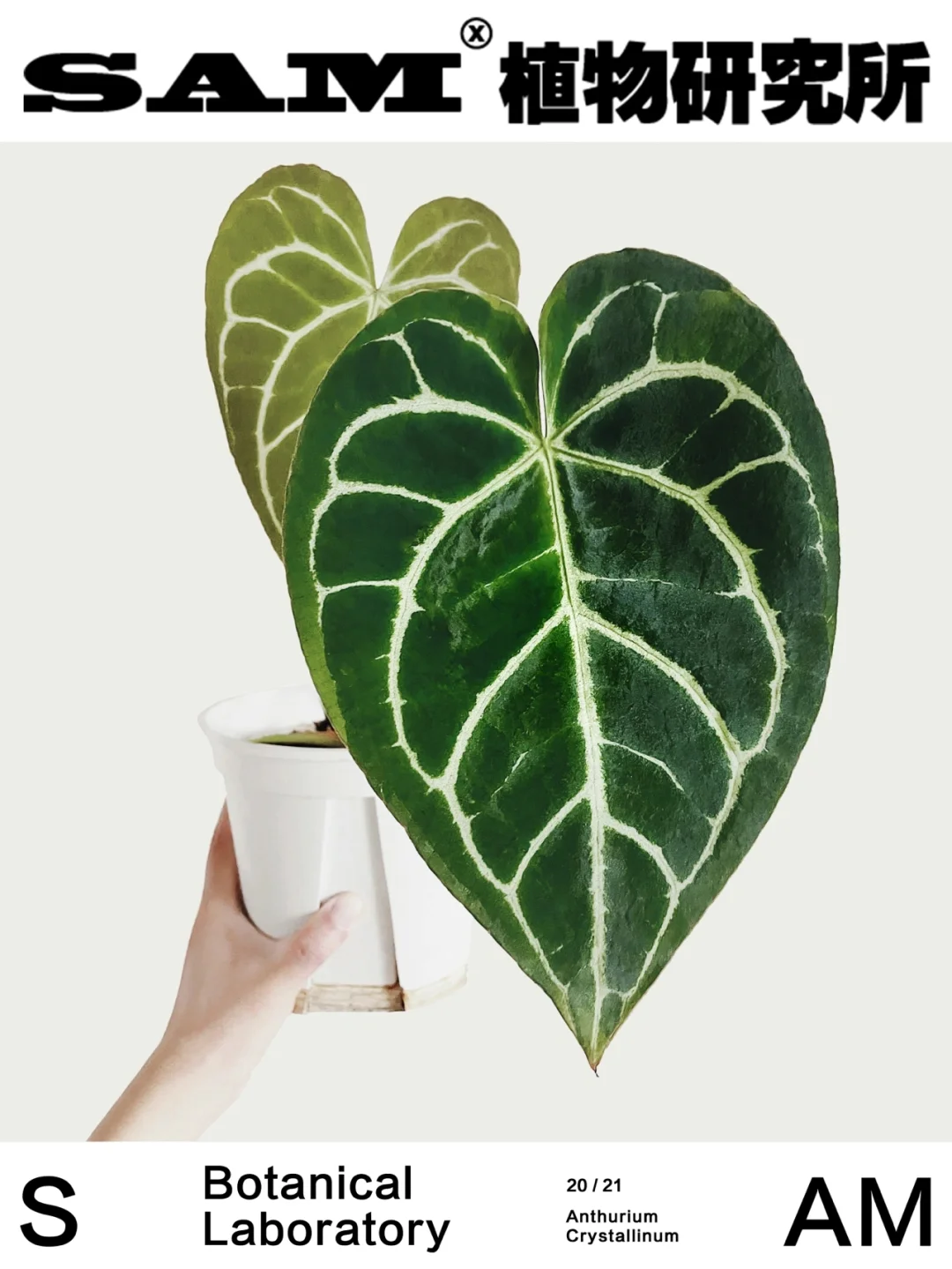 💚Tips:龟甲水晶花烛是一种入门级的水晶花烛,养护过程中,新叶会从丝绒光泽的黄褐色逐渐加深变为深绿再到墨绿色,ins的极简高级感油然而生,因此也深受广大热植爱好者们喜爱。在日光下,闪耀的银色脉像水晶一样闪烁,和暗绿色叶色相得益彰。龟甲水晶花烛生长较为缓慢,养护也相对简单,基本不需要频繁的修剪控形,只需定期处理枯叶和花序。龟甲水晶花烛也是SAM继克莱恩花烛后第二个入手的进口花烛品种,当时还非常的稀有,入手后长出第一片新叶时,真是觉得美滋滋,捧在手里都怕化的那种,恨不得抱着睡觉。但是现在,它已经比较常见且平价了,非常值得入手。