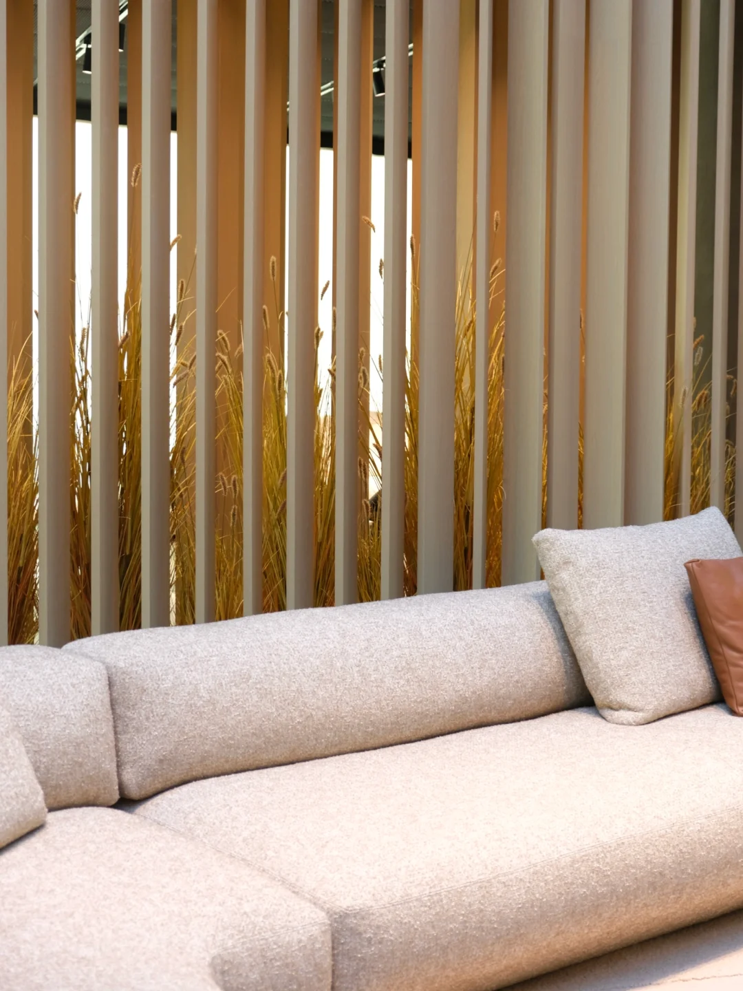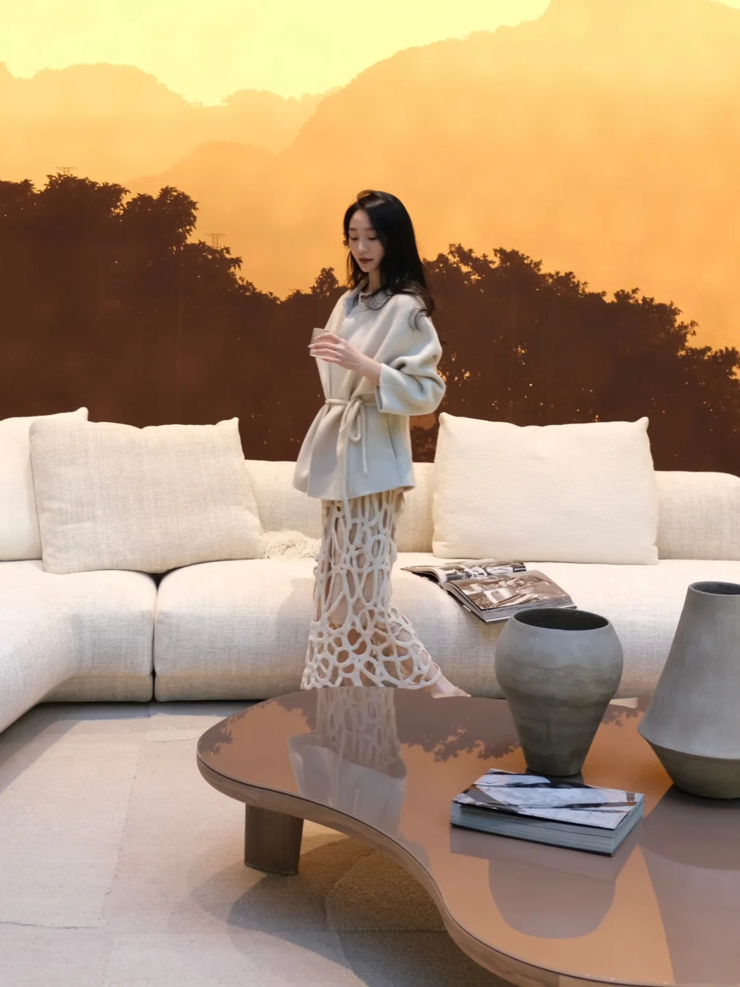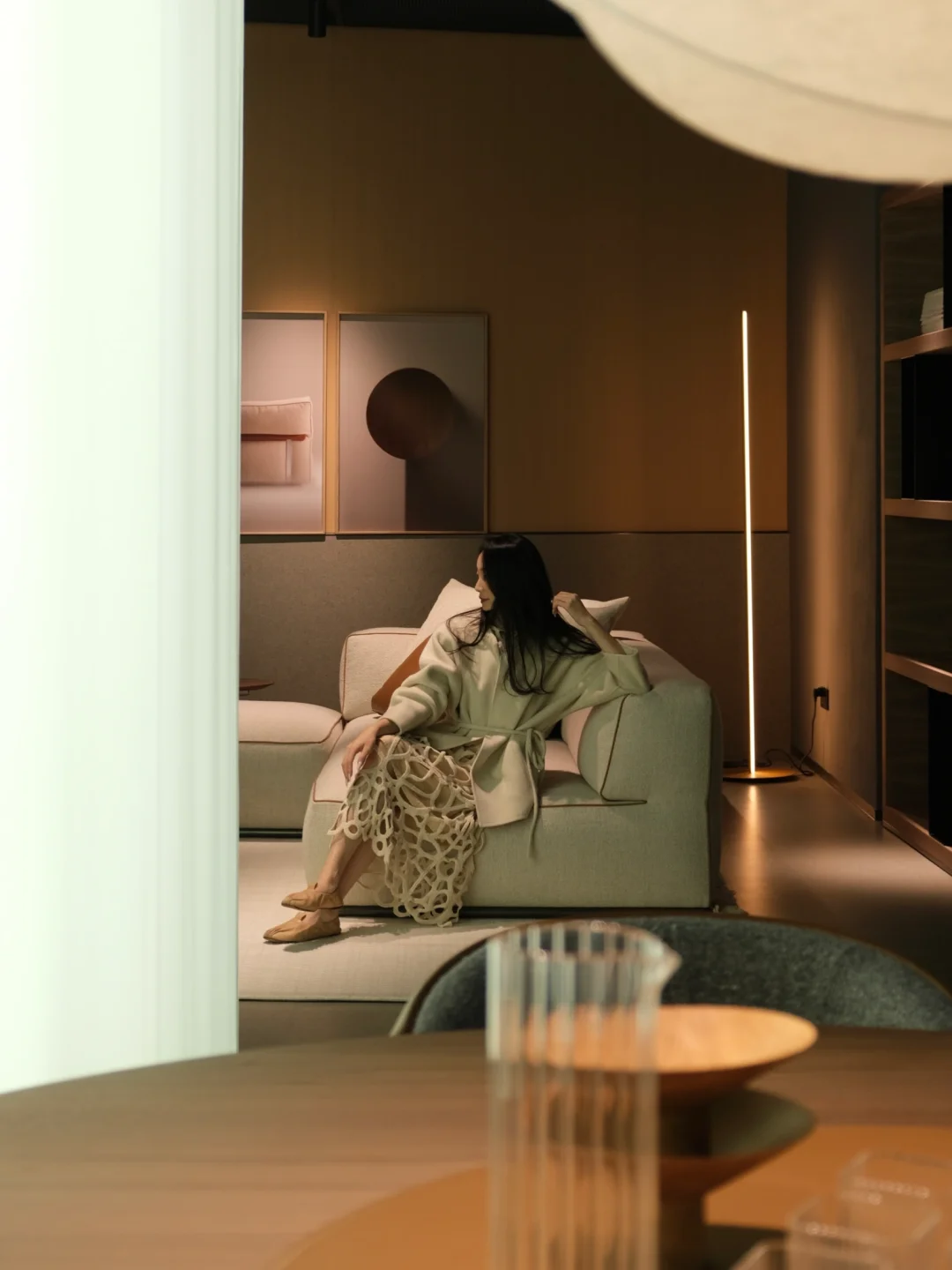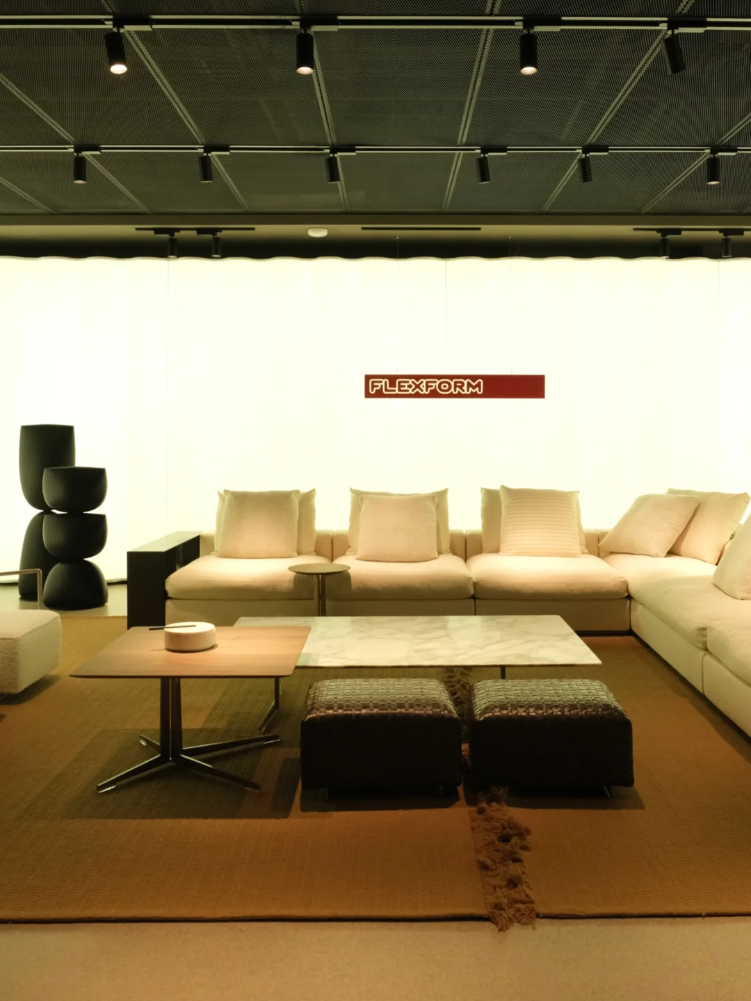 什么样的家可以用Flexform 诠释 在我的想象里 应该是大隐于市 被植物包围的静谧大宅 客厅里坐落的沙发 由柔软又考究的织物面料包裹 线条流畅 低调优雅 餐区要搭配温润的木质圆桌 各种家具材质之间的搭配错落有致 是那种“old money”刻在骨子里的高级优雅