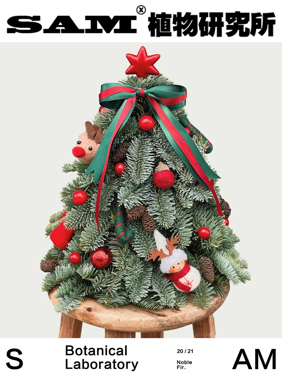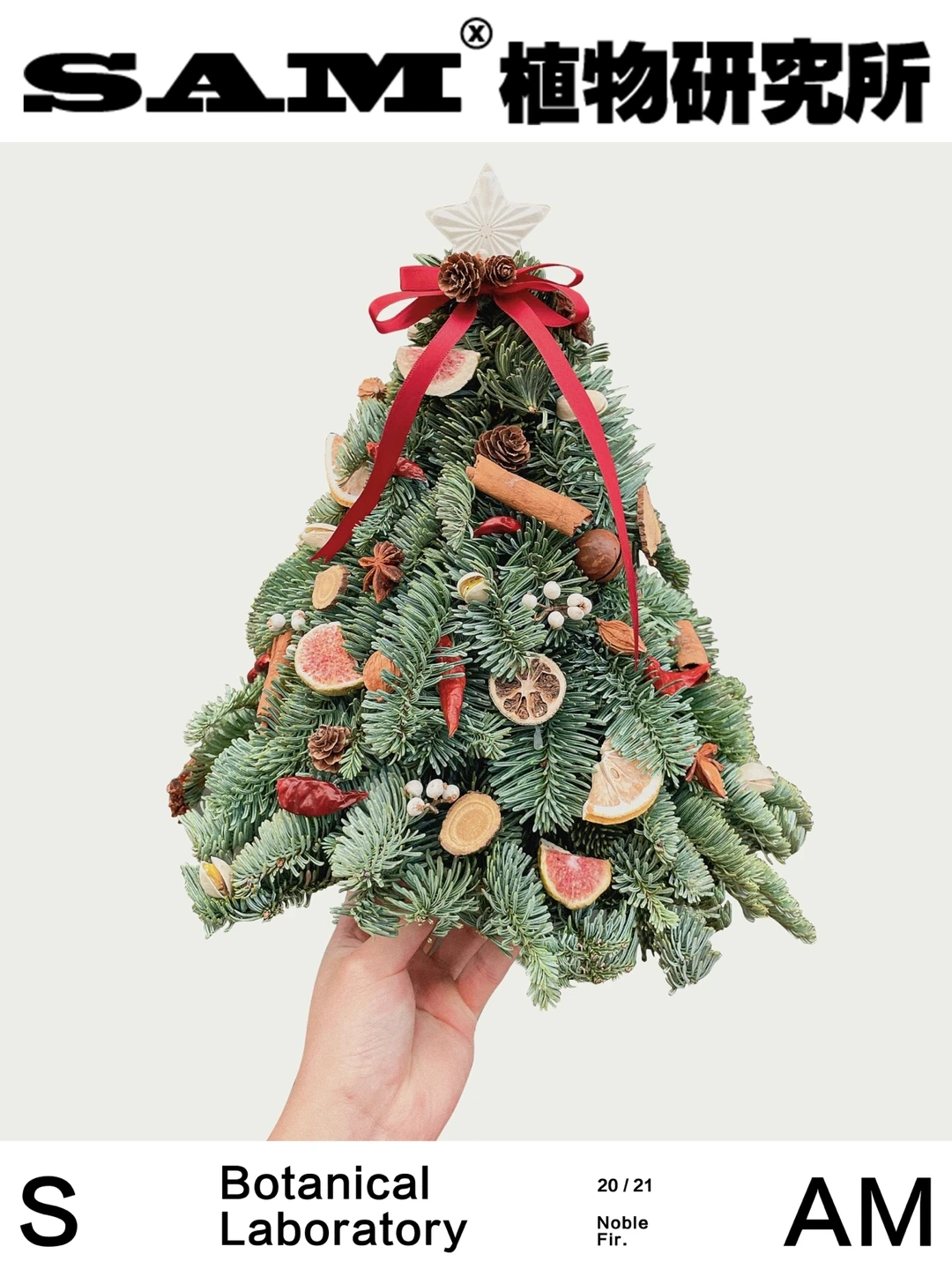 而这一次,SAM团队也为大家精心设计了三款圣诞诺贝松,“吃货圣诞树”、“经典圣诞树”和“银色圣诞树”,每一款都独具特色,满足不同空间和节日氛围感需求。每一棵树都纯手工制作,独特而有仪式感。如果你也喜欢这种高级和森系的自然美,那一切就交给SAM吧。