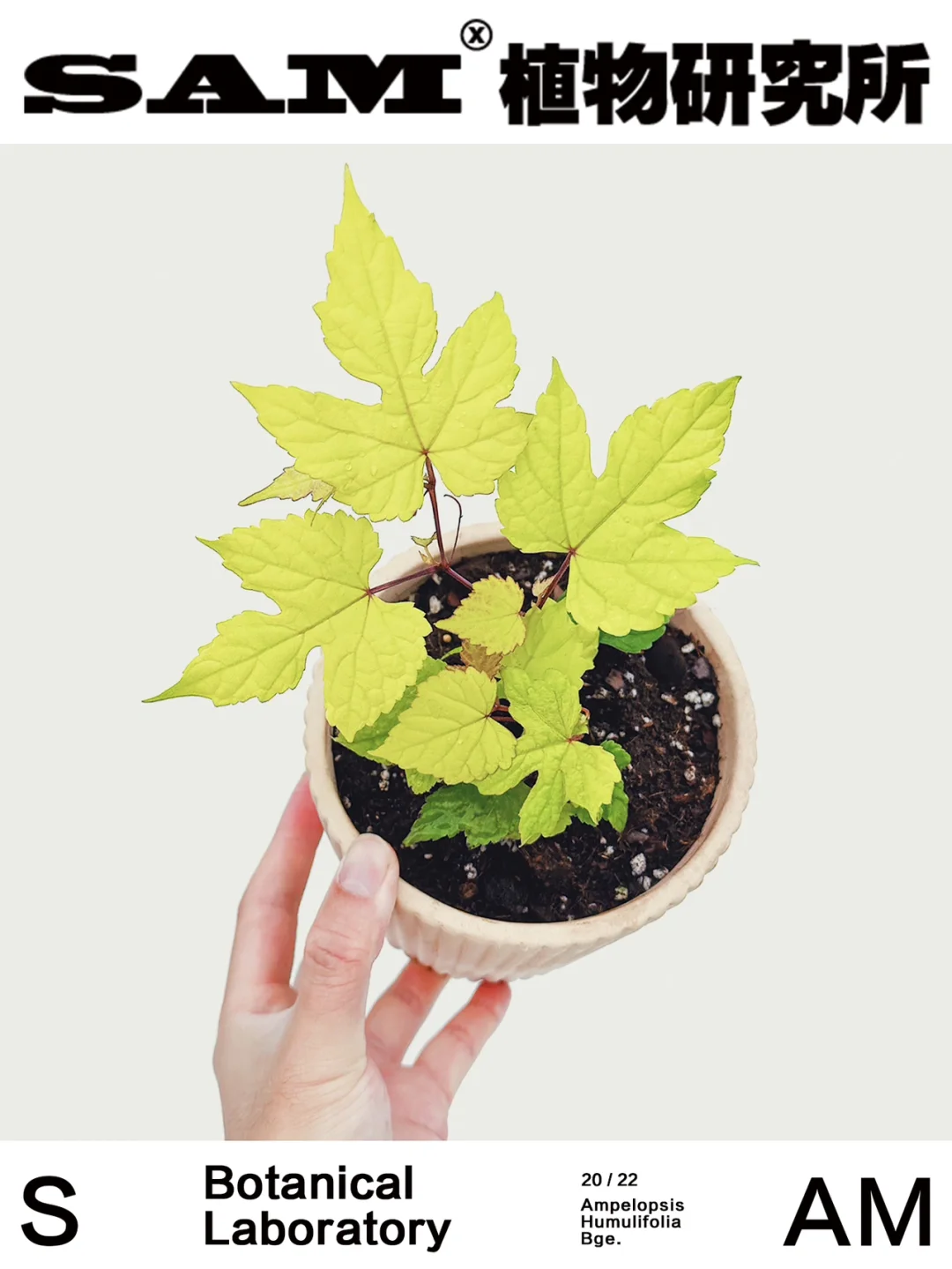 💚Tips:蛇葡萄又叫山葡萄、野葡萄,非常耐寒,常生于山谷林中或山坡灌丛荫处,喜光照、耐寒、抗旱、耐瘠薄,在冬天的时候零下三四十度的环境也能自然越冬而不被冻伤,对气候有较强的适应性。据说是因为蛇可以吃它的果实而得名,因此也作为山野间的一种水果。除此之外,它还是一味中药,具有清热利湿、散瘀止血、解毒等功效。今天SAM分享的是金叶蛇葡萄,颜色亮丽,充满了秋色,给人眼前一亮,不自觉嘴角上扬的欣喜感。作为秋日色卡中的一抹亮黄色,和大部分大地色黄叶相比,能让人忘却萧瑟感伤的悲秋情绪,更多了些秋日的希望和温馨。而且很适合植物新手。