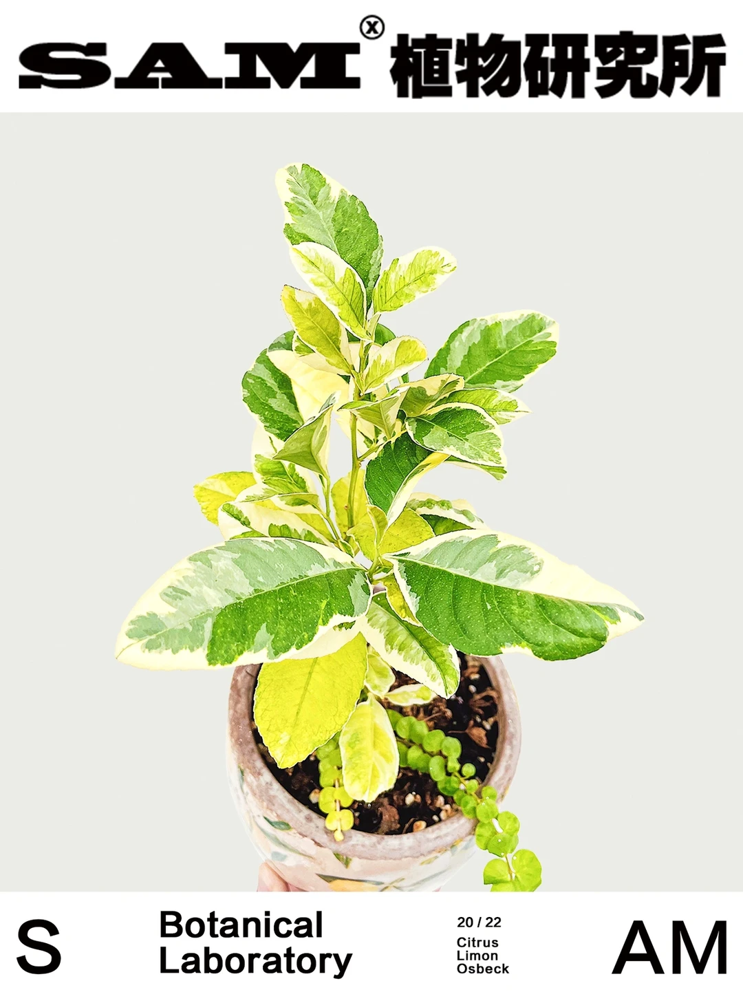 💚Tips:这款花叶柠檬很早就是SAM的植物种草清单之一,略带奶油黄的白锦部分像油画一样散布在叶片上,让本身只能食用果实的柠檬树也能当做盆栽观叶,并且本身柠檬叶片又较为厚实,作为锦化植物常有的焦叶问题在它身上也很难看到。它的叶片除了美观之外,本身也自带一股沁人心脾的柠檬茶香,味道十分浓郁,作为香氛植物也是非常不错。养护柠檬要注意给予更多的光照和通风,这样可以长势更快,花叶柠檬也是可以开花和结果的,只要养护得当,可以收获一树的香水柠檬果子。