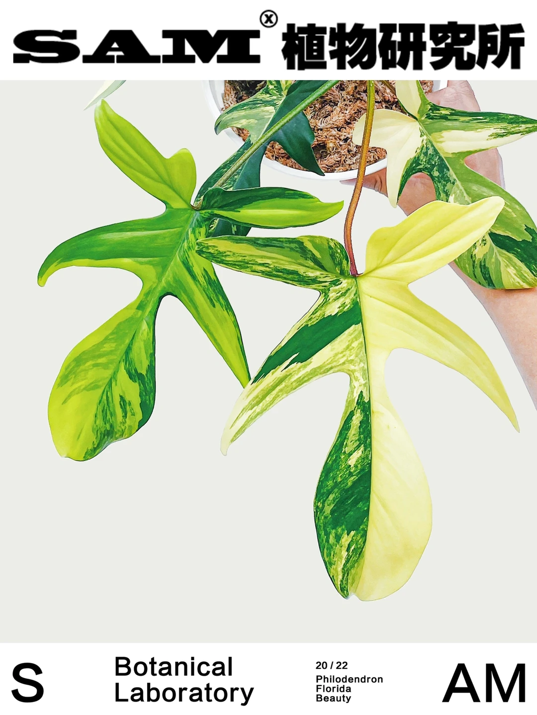 💚Tips:今天SAM要跟大家分享的是一款前两年火爆全网,今年依旧热度不减的锦化蔓绿绒品种-佛罗里达美人锦。正如其名,拥有像标志美人般的纤细叶形,而且随着植物成长,叶片可以长到非常大。这还不是它最迷人之处,美人最特别的是叶面上斑驳分布的像奶油飞溅般的黄锦,老叶的锦会呈现出非常鲜亮的明黄色,与绿色交错部分会叠加出抹茶色,再配上自身绿色部分,活脱脱一幅纯天然的油画作品。美人也是一种像上攀爬的植物,在养护的时候给予适当的攀爬支持或者在茎干处包水苔都能让新叶长势更好,尺寸更大。