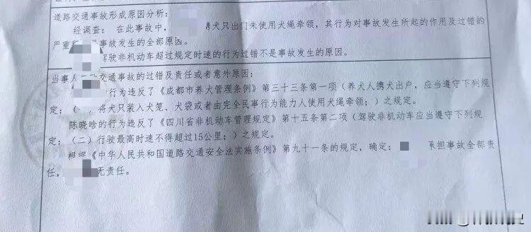 成都18岁女大学生骑自行车被宠物狗绊倒致颅骨骨折:目前她完成开颅手术已出院,交警认定狗主人全责。[嘘] 成都一位大二女生小陈,在骑车回学校的路上,经历了一场无妄之灾,一段行车记录仪拍下的视频,清晰地还原了事发过程。 当时她沿着马路正常骑行,一只白色的小狗突然从路边冲出来,径直穿到车前,自行车的前轮被小狗绊住,小陈整个人瞬间失去平衡,向前飞出去,头部直接撞在地上,视频里能看到,狗很快跑开了,而马路对面站着一位手里拿着牵引绳的男子。 事故发生在11月15日晚上,现场有路人立刻帮忙,叫了救护车也报了警,小陈被送到医院后,情况很不好,诊断是创伤性蛛网膜下出血、开放性颅骨骨折,一度收到了病危通知书。 她连夜做了开颅手术,在重症监护室住了两天才转到普通病房,经过半个月的治疗,她已经在11月底出院回家休养,算是脱离了危险。 交警部门后来出了责任认定,狗主人遛狗时没有使用牵引绳,是导致事故的直接原因,承担全部责任,据了解,狗主人目前已经垫付了五万块钱的医疗费,双方还在协商后续的赔偿。 成都18岁女大学生被未拴绳宠物狗绊倒致重伤的事件,网友们围绕事件责任、养犬规范、公共安全等话题展开了热烈讨论,评论区俨然成了民意表达的聚集地。 “作为养狗人,看到这种新闻特别气愤,出门牵绳是基本常识,这次事故完全是可以避免的。” “交警认定狗主人全责完全正确,根据相关法规,饲养的动物造成他人损害的,动物饲养人应当承担侵权责任,此案中狗主人未牵绳存在明显过错。” “孩子每天骑车上下学,最怕遇到这种突发情况,希望相关部门能加强养犬管理,同时学校也要加强学生的安全意识教育。” “看到路人纷纷上前帮忙,报警的打120的,这种正能量值得点赞,在意外发生时,陌生人的善意特别温暖。” “虽然事发时处置不当,但事后积极赔偿、配合治疗的态度值得肯定。” “赔偿是法定义务,不能因为事后补救就淡化前期过错。” “成都早在2010年就出台了《养犬管理条例》,明确规定携犬出户应当用犬绳牵领,关键是要加强执法力度,让规定落到实处。” “颅骨骨折的开颅手术加上后续康复,医疗费用可能高达数十万,这还不包括误学损失、精神损害赔偿等。” “高校应该开设安全必修课,教授交通安全、自我防护等实用技能。学生独自在外求学,具备基本的安全防范能力很重要。” 您认为应当如何避免类似事故再次发生?是应该加大违规养犬的处罚力度,还是需要加强公共安全教育?欢迎在评论区分享您的看法和建议。 信息来源:大风新闻