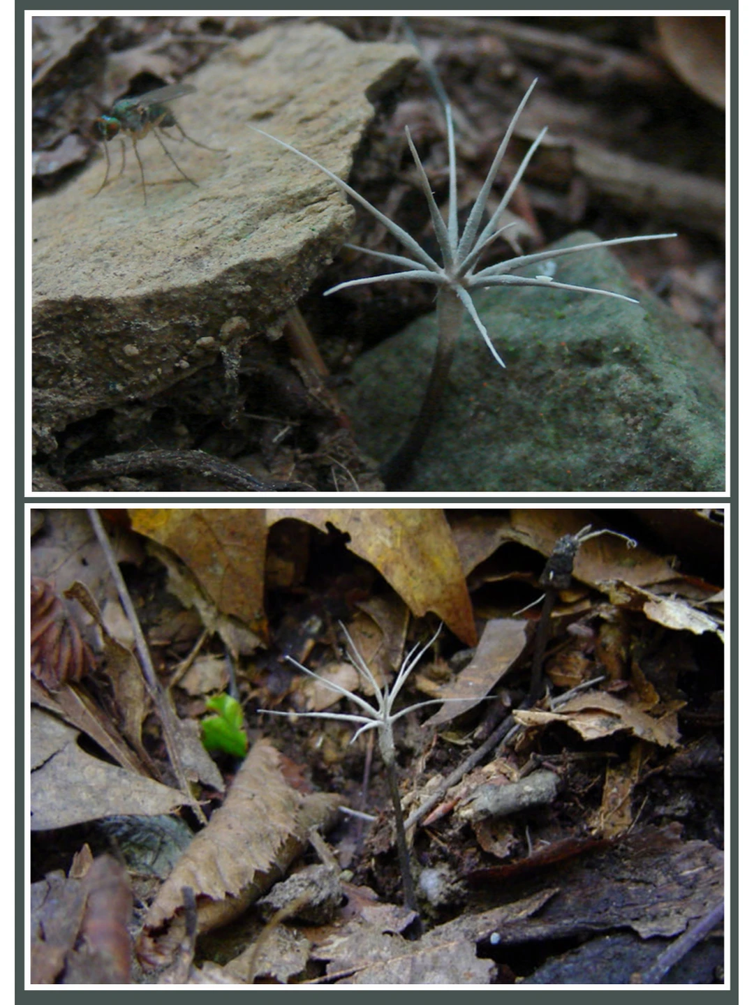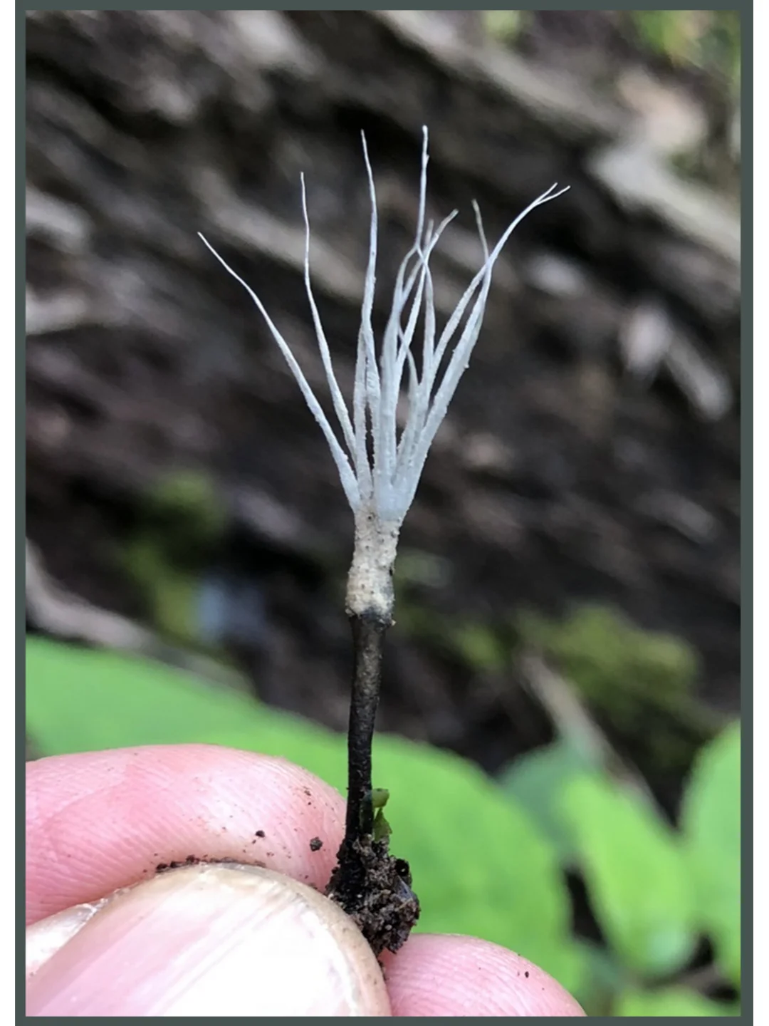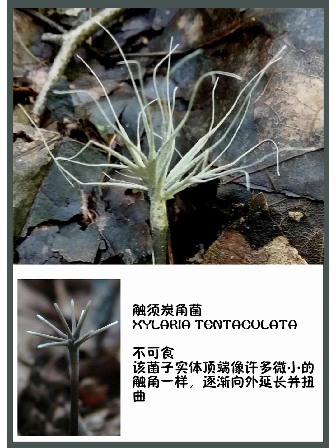 触须炭角菌 xylaria tentaculata 不可食 该菌子实体顶端像许多微小的触角一样,逐渐向外延长并扭曲