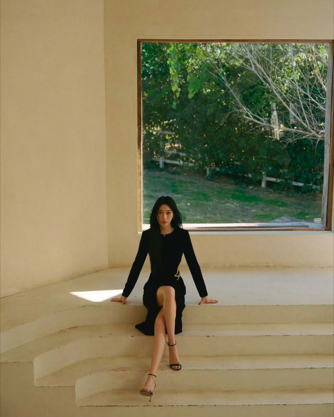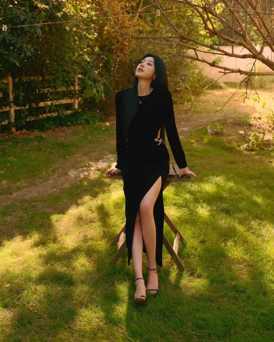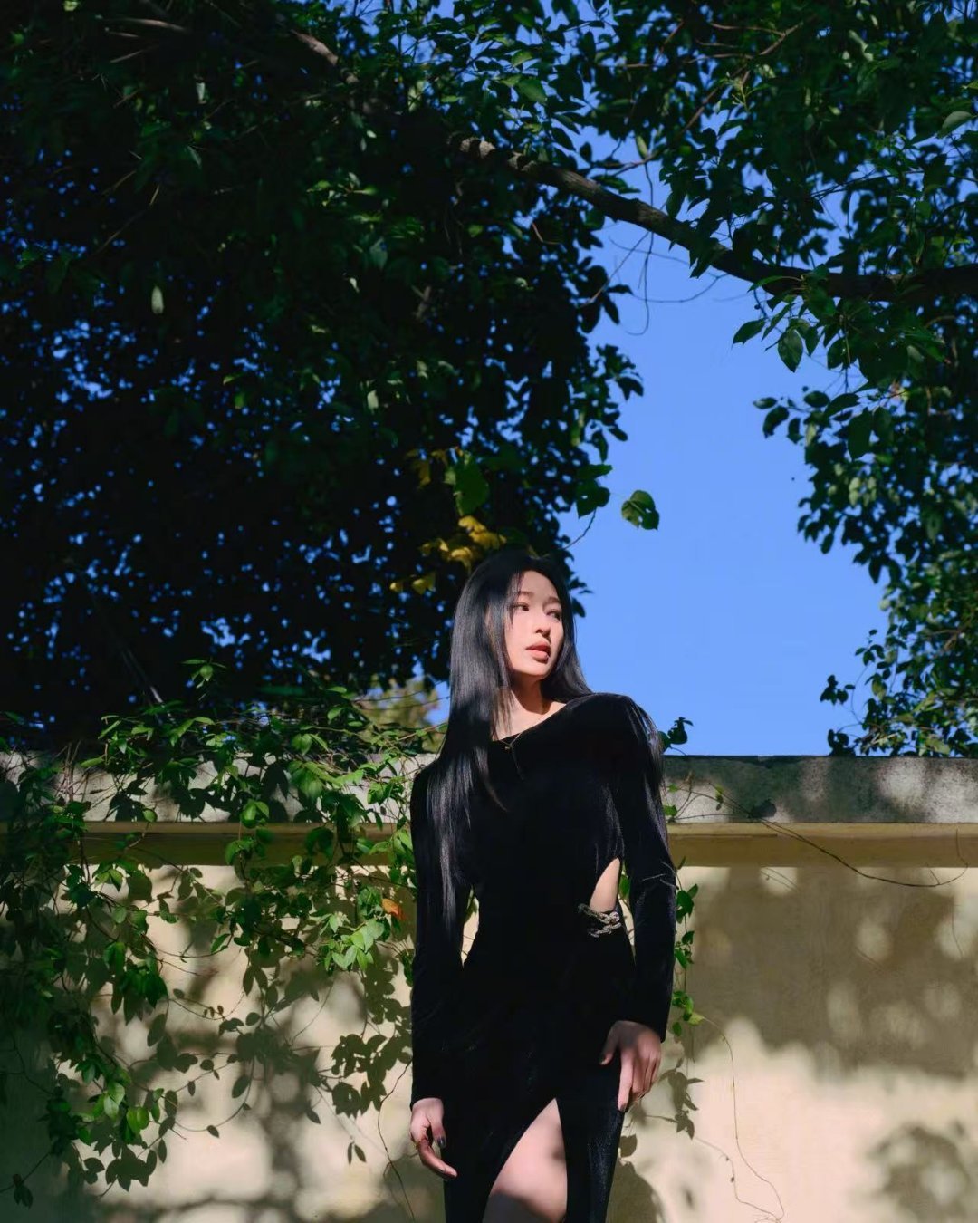 张俪 森林里的黑天鹅张俪这身简直就是森林里的黑天鹅,仿佛闻到了大自然的气息,张美丽你还是过份美丽了!