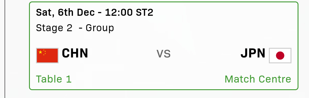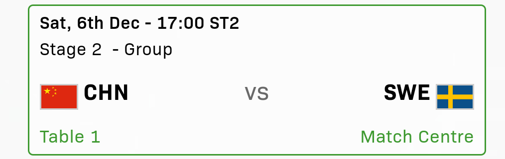 比赛安排:12.5 13:00 T1中国vs德国12.6 12:00 T1中国vs日本12.6 17:00 T1中国vs瑞典中国队加油乒出精彩2025年成都混合团体世界杯