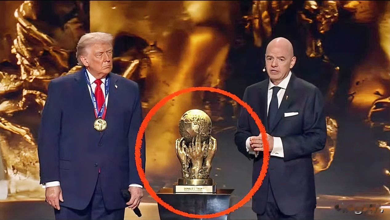 万万没想到啊!特朗普终于如愿以偿了。 当地时间12月5日,美国总统特朗普亲自出席了2026年国际足联的世界杯抽签仪式,期间,更是获得了第一届国际足联特设“和平奖”。据多家媒体报道,在华盛顿肯尼迪表演艺术中心的国际足联抽签仪式上,国际足联主席因凡蒂诺不仅为特朗普准备了金色的奖牌,而且还特意准备了一个硕大的奖杯,甚至被认为比足球世界杯的“大力神杯”还要大上一倍,显然,因凡蒂诺这一安排被公认为是在故意拍特朗普马屁、弥补一直积极争取获得诺贝尔和平奖失败的特朗普。此外,因凡蒂诺还在现场宣布了授予特朗普“和平奖”的理由,高度称赞特朗普是一位充满活力的领导者,为缓和世界局势和冲突做出了努力,并且在世界舞台上一直致力于倡导足球的团结力量。总之,特朗普此次现身国际足联活动无疑风光无限,哪怕这个所谓的和平奖是为其专门定制,在颁奖时还遭到了现场观众的嘲笑。