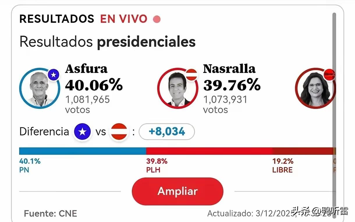 超过72 小时还未公布, 洪都拉斯大选大概率会重来,只要特朗普中意的阿斯富拉没选上,他就会一直认为选举舞弊。其实不用这么麻烦,特朗普完全可以派个美国人去当总统,然后任命阿斯富拉当总理,纳斯拉亚当国会议长,蒙卡达当最高法院长。现任总统卡斯特罗要是敢反对,直接宣布关闭洪都拉斯领空。
