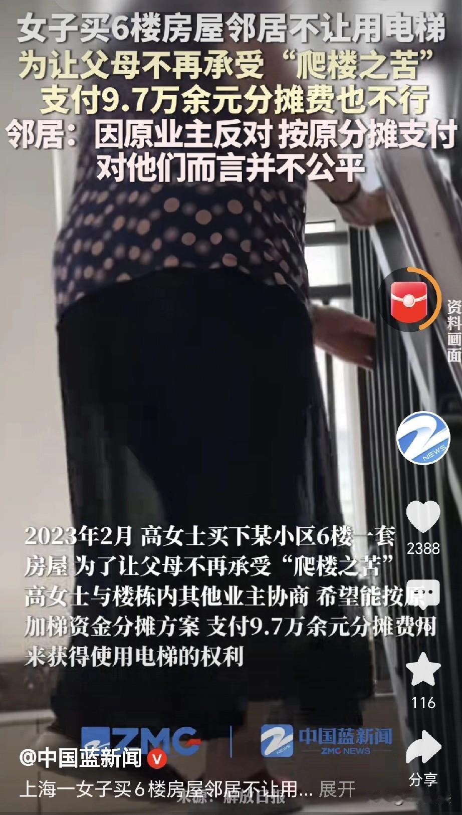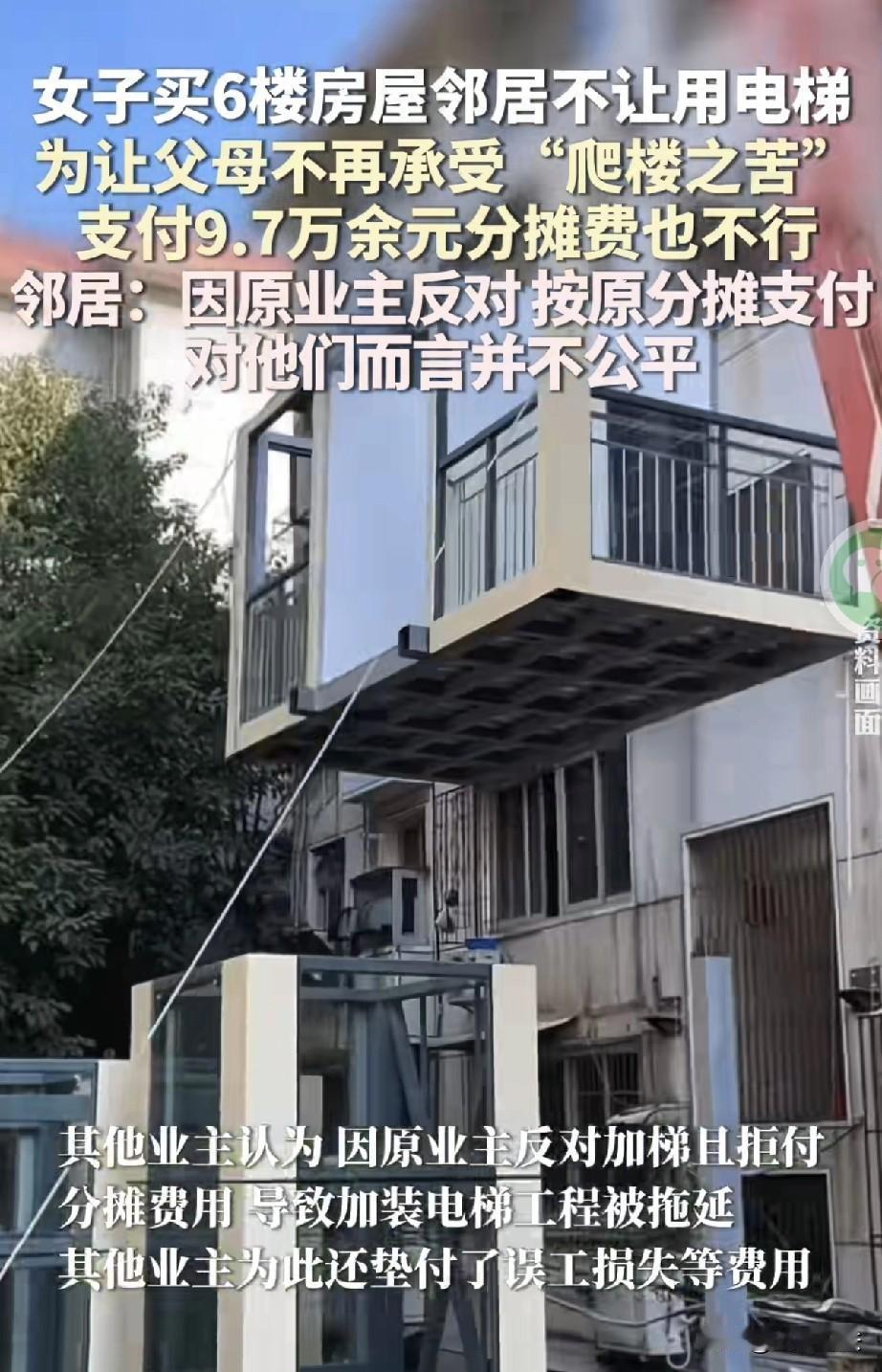 上海,一女子为孝顺父母,买了套6楼的房子,谁知住进去之后,邻居不许他们使用电梯,女子这才知道,加装电梯时原房主不同意,女子主动提出,她愿意分摊97000元装电梯费用,可没想到,邻居们还是不同意,邻居们认为,时过境迁,如果按照原来的费用缴纳,对邻居们不公平,要想使用,必须多掏费用,女子告到法院,原房主的错不该由我承担,因此她要求法院确认使用电梯的权利,结果亮了! 高女士的父母年纪越来越大,他们的腿脚一年不如一年。 之前住的老房子没有电梯,每次父母爬楼都会气喘吁吁。 高女士心疼父母,决定给他们买一套带电梯的房子,她四处奔波,终于找到了一个多层的小区。 小区内有一套6楼的房子,无论是户型还是室内的环境,无一不合高女士的心意。 高女士又到小区里转转,里面绿树成荫,安静舒适,还有健身器材,非常适合老人居住。 2023年2月,高女士买下这套房子,经过简单的装修收拾,高女士的父母高高兴兴的住了进去。 谁知住进去之后,老两口上下电梯,遭到邻居们的拒绝,高女士这才知道,这套楼房是加装的电梯。 当初装电梯时,全楼的业主进行了集资,但这套房子的原房主不同意,他拒不分摊加装费用。 如此一来,按照协议,原房主也就不能使用电梯。 而高女士买下这套房子,高女士父母上下楼时,想要使用电梯,其他的邻居,坚决不同意。 高女士父母为了减少纠纷,只好每天步行上下楼梯,没过多久,两位老人就招架不住。 可邻居们不肯让步,虽然你是新来的业主,但你购买的房子,还是之前业主的房子。 我们不管你们是新房主还是旧房主,当初加装电梯时,旧房主一口拒绝付费! 既然你们买了他的房子,那么你们也就别想使用电梯! 高女士得知了情况,立刻找到各位邻居,她表示自己愿意根据加装电梯的总金额,分摊到户,她愿意补缴97000元的加装费用。 谁知这时,邻居们还是不愿意,你现在就是缴了这部分费用,我们还是不允许你用电梯! 高女士懵了,连忙追问邻居,那要怎样才能使用这部电梯? 邻居们表示,当初装电梯时家家户户都十分高兴,唯独高女士家原房主拒不同意。 就因为他不同意,电梯迟迟不能安装,加装电梯的工程就被拖延,各家邻居又垫付了误工损失费。 并且,因为缴费的日期早就已经截止,高女士如今缴费,已经无法享受加装电梯的补贴。 这样一来,如果高女士还按照之前的原分摊方案来支付费用,就能和邻居们同样使用电梯,这无疑来说,对其他邻居很不公平。 高女士懵圈,这其中的复杂,令她万万没有想到,她被难住了,那么到底应该怎样缴费,才能算作公平那? 高女士认为,邻居们这样的算法,对她来说更不公平,因为之前的情况她并不了解,邻居所说的损失,也并不是由她造成的。 因此来说,如果要她承担额外的费用,对她来说,也不公平。 买房之前,她并不知道其中这些原因,如果她提前知道,她也不会买这套房子。 并且,她同意按之前分摊的费用支付,以弥补之前原房主不愿意缴纳的费用。 但是原房主造成的错误,不应该由她这位新房主来承担。 可是几经协商,邻居们就是不肯让步, 高女士又气又急,只能想到了走法律途径。 高女士告到法院,要求确认自己使用电梯的权利。 而法院受理之后,并没有直接给予判决,法院考虑到邻里之间,大家都有难处,应该彼此互相体谅和帮助。 法院组织双方进行了多次的调解,双方尽可能说出自己的委屈。 高女士表示,父母年纪大了,爬楼实在吃力,自己买这套房就是为了让老人方便。 因此她愿意在合理范围内做出让步,她愿意在支付原分摊费用之外,再提供一定的补偿费用。 邻居们也讲述了当时的委屈,当初装电梯的时候,大家不仅出钱,还得协调各种手续。 就是因为原房主拒绝配合,耽误了施工进程,大家费时费力,不但垫付了施工方的误工费,还生了不少的气和委屈。 现在新房主只想按原分摊数额补缴费用,直接就能享受成果,他们心里不平衡,因此这才反对。 法官晓之以理,动之以情,房主已经换人,高女士也是出于一片孝心,并未她愿意补偿邻居。 《民法典》第271条规定:业主对建筑物内的住宅、经营用房等专有部分享有所有权,对专有部分以外的共有部分享有共有和共同管理的权利。 《民法典》第273条第2款规定:业主转让建筑物内的住宅、经营用房,其对共有部分享有的共有和共同管理的权利一并转让。 加装电梯属于建筑物专有部分以外的共有设施,归楼栋全体业主共同所有,业主基于房屋所有权自然享有使用权利。 高女士购买房屋后,已依法继受原房主的业主身份,其对电梯的共有使用权应随房屋所有权一并转移。 原房主未出资不影响新房主的合法权利,高女士愿意补缴原分摊费用,已履行共有部分的义务,邻居无权以原房主过错拒绝其使用。 但邻居因原房主反对导致工程延误、损失产生的诉求也合理。 经法院调解,最终邻居们表示,同意高女士使用电梯。