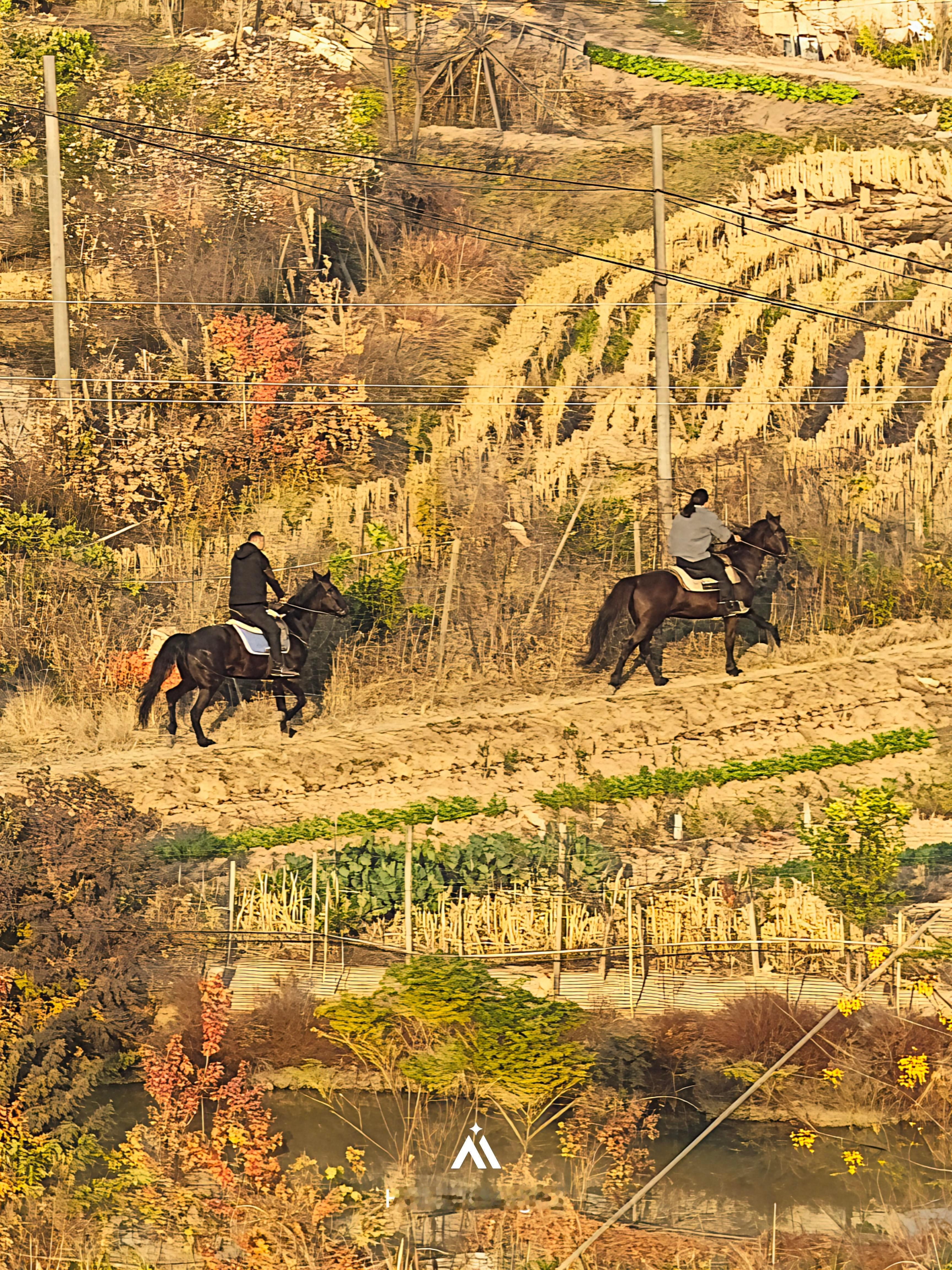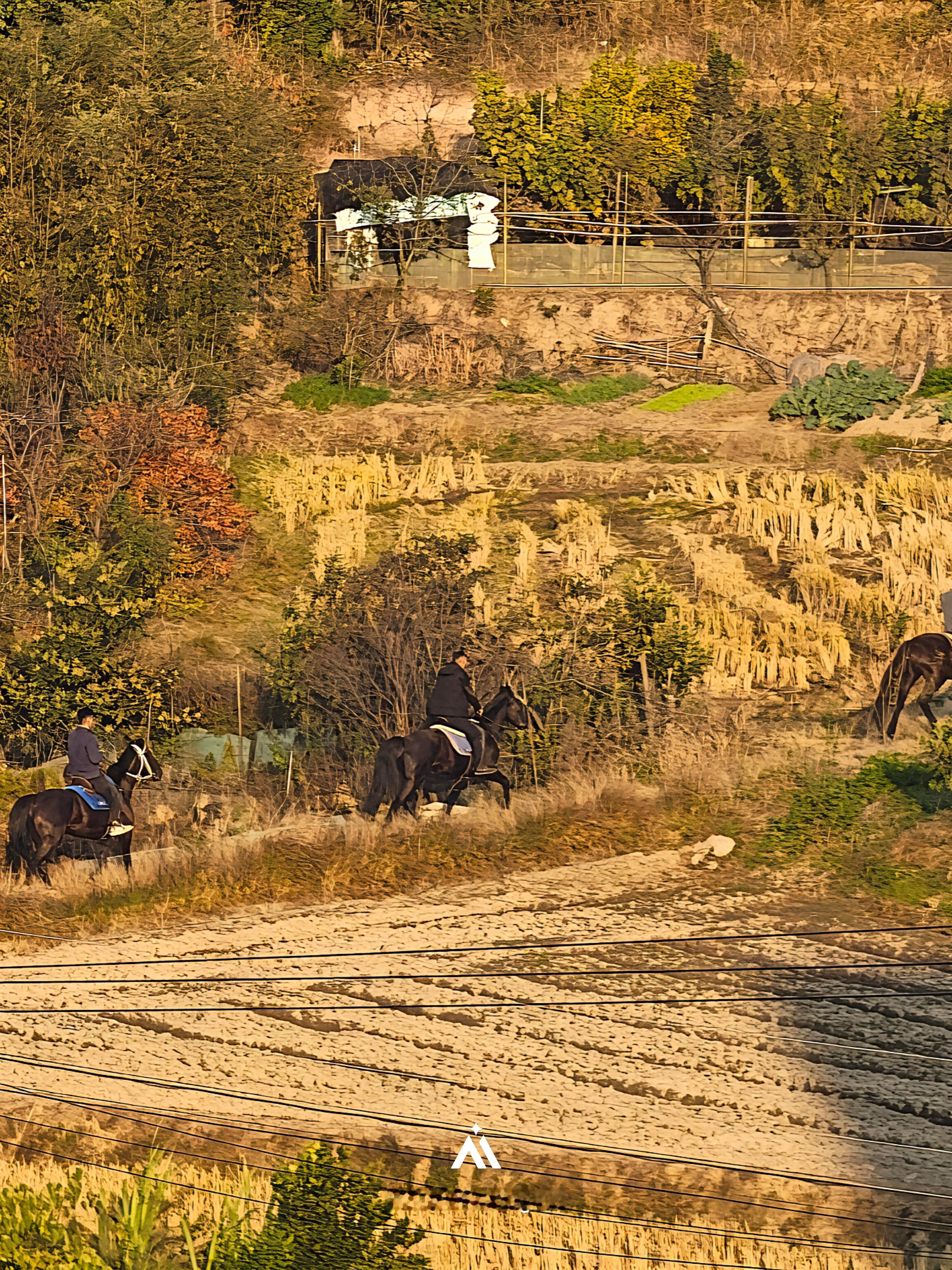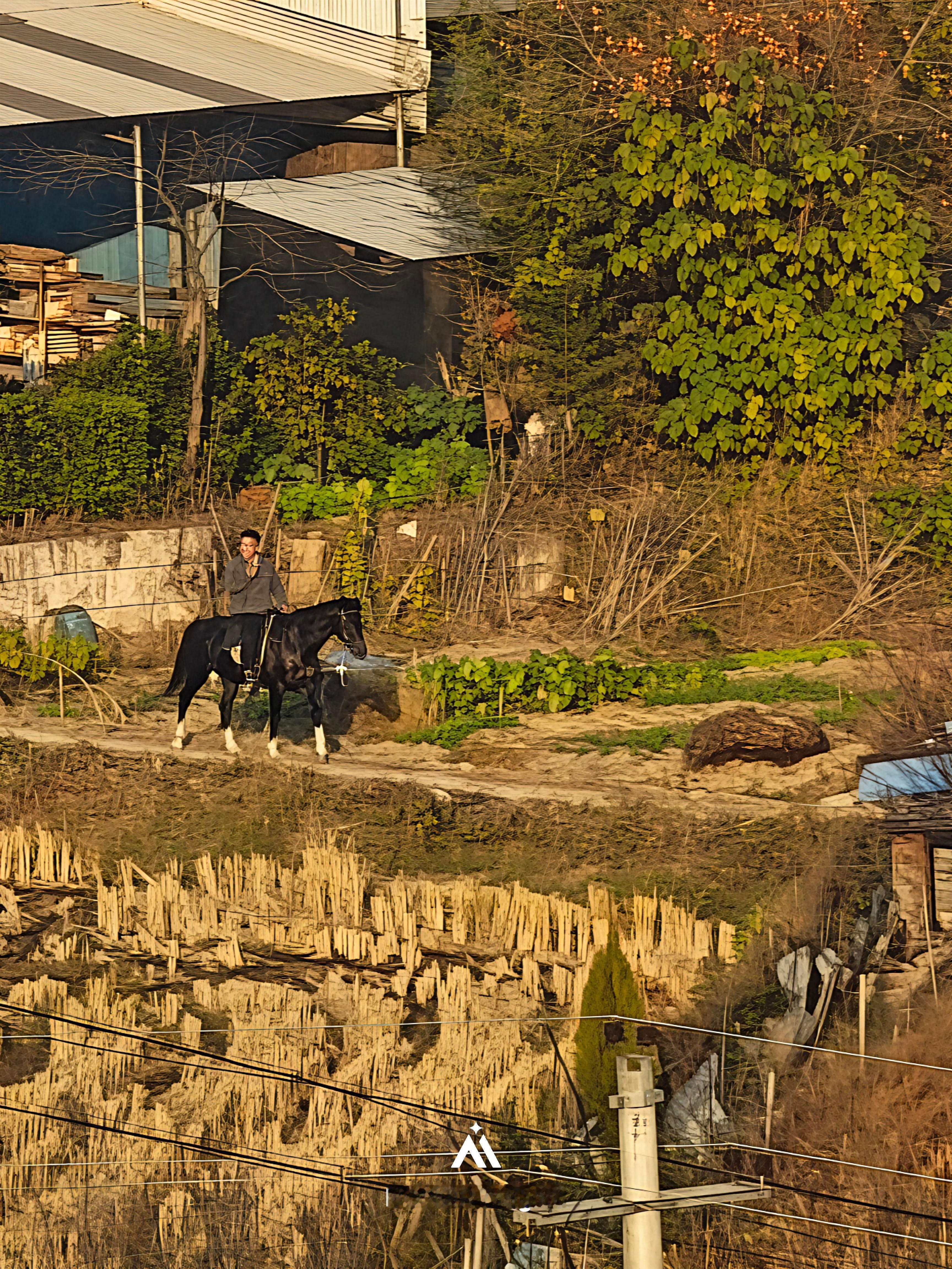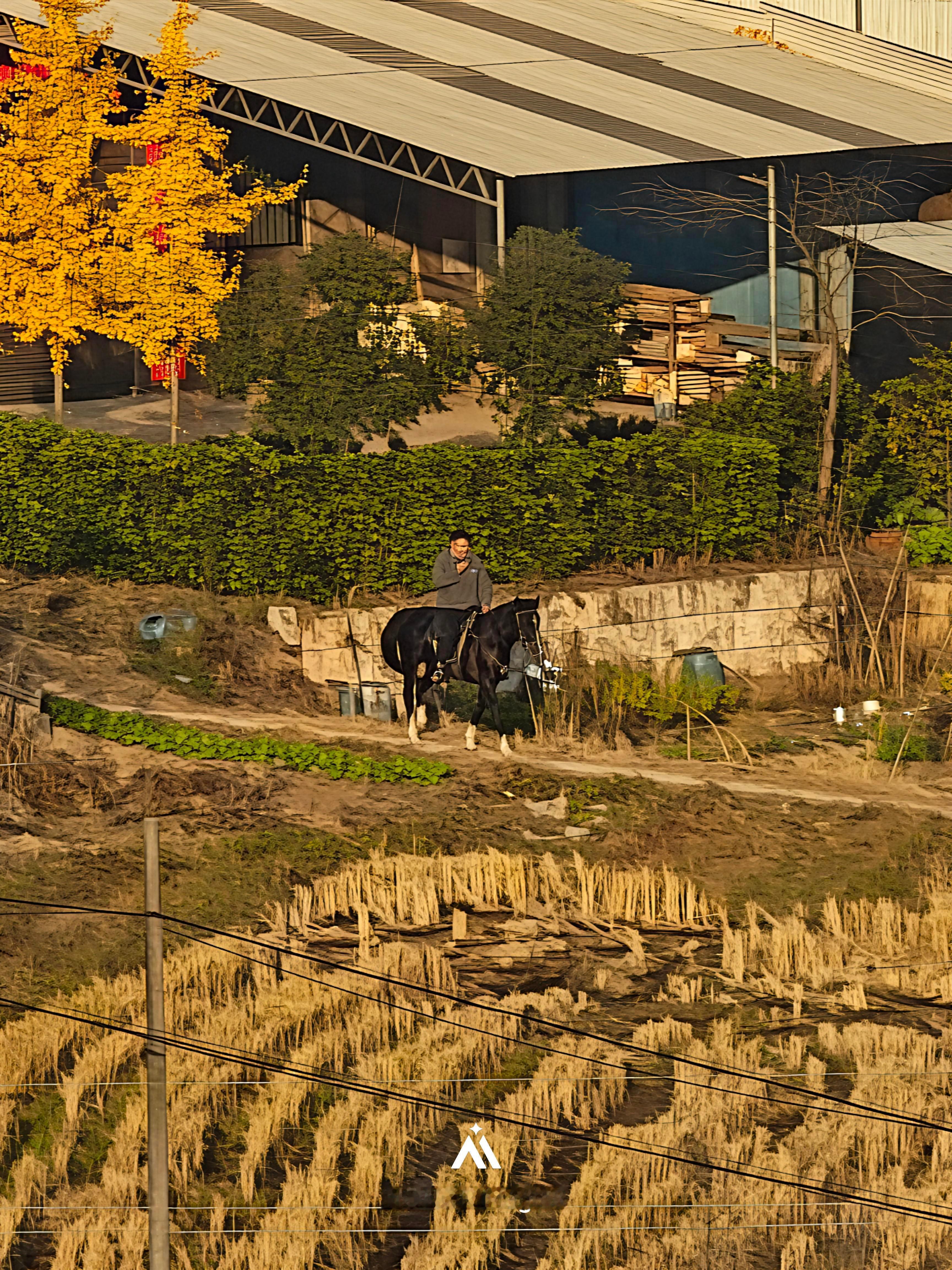 四点钟,太阳快下山了,隔壁村出来遛马了