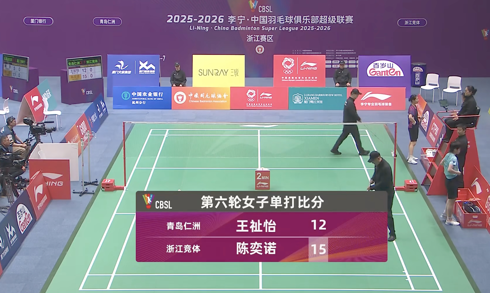 羽超联赛 【2号场地:瑞昌碧源 0-3 厦门银行】混双:孟令昊/汤思睿 6-15