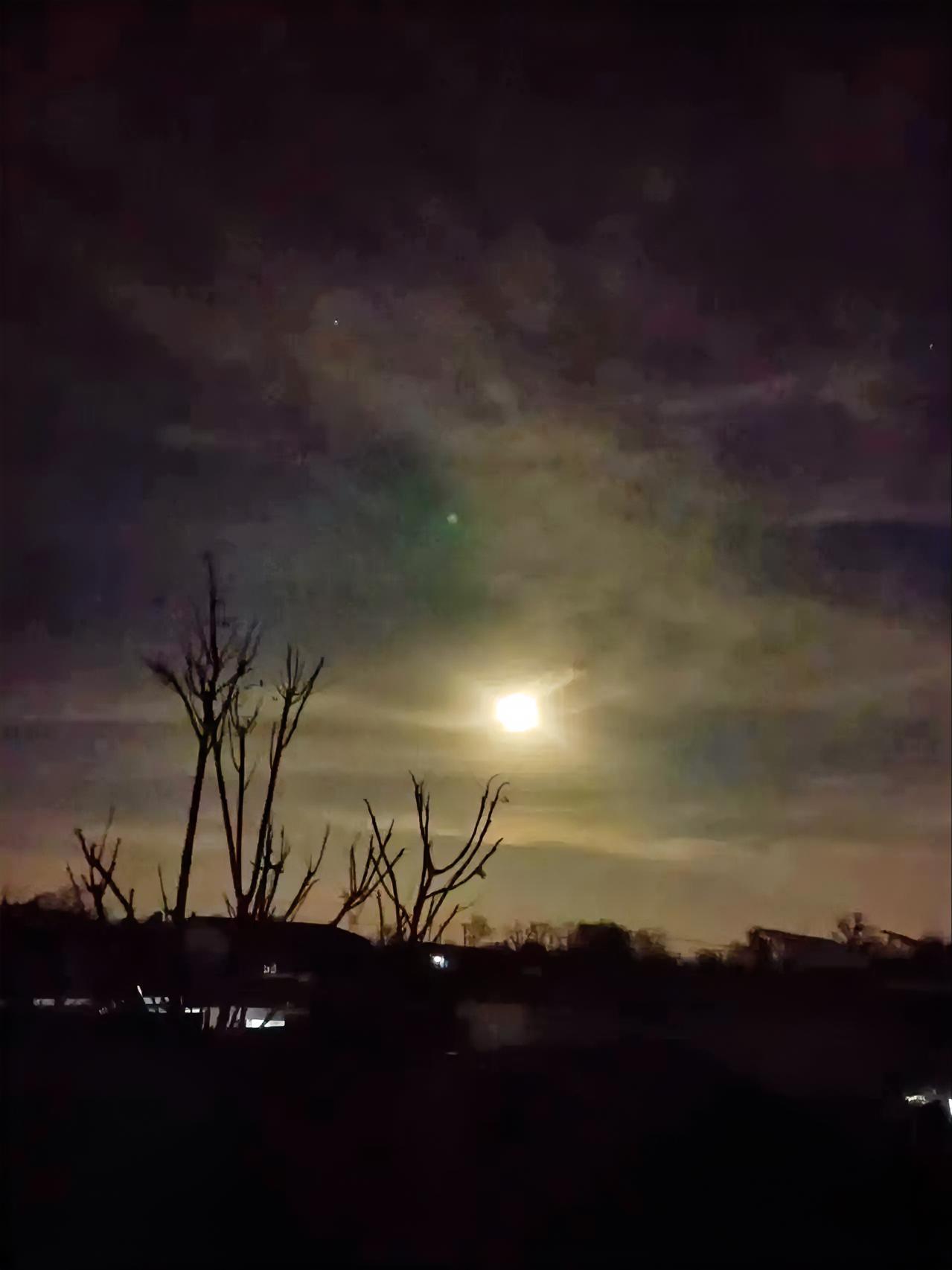 夜揉碎了云,把月亮揉成颗暖玉,悬在枯树的枝桠上。 风裹着冬的余味,掠过秃枝时漏下几缕月光,在屋瓦上碎成银鳞。远处窗灯是暗夜里的星子,和天上那点微光遥遥碰杯。 树影把夜抻得细长,月亮浸在云的软絮里,连呼吸都轻了——这人间的夜,一半是月色铺的笺,一半是枝桠写的诗。