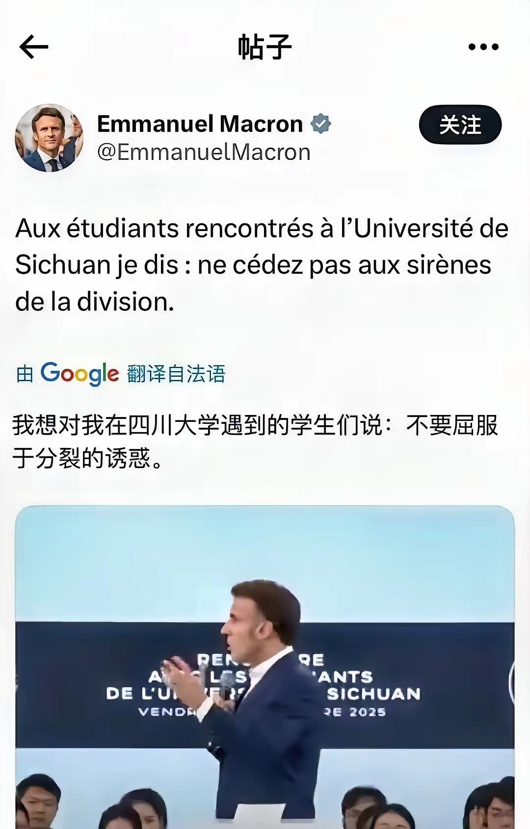 看了许久都没读懂为何马克龙要说这句话,最后还是在网友的回复里,看到了最符合语境的答案(图二)。 大家觉得会是这个答案吗?