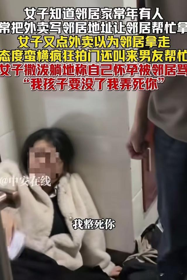 辽宁,女子点外卖写邻居家地址,因为外卖被邻居拿走态度蛮横疯狂拍门,还叫来男朋友撑腰,最后一屁股坐地上撒泼打滚:我怀孕了,我孩子要没了,我整死你! 据中安在线报道,一女子发现邻居家长年有人,于是每次点外卖都写邻居家地址,让邻居帮忙拿。 12月6日,这名女子又写了邻居地址,因误以为餐被邻居拿走,女子气势汹汹跑到邻居家门口,疯狂拍打邻居的门,大喊大叫:你们拿的外卖是我们家的,还给我们! 邻居非常愤怒,平时经常写他们家地址已经很让人困扰了,现在还上门闹事,这谁忍得了? 邻居一气之下在门内和女子吵了起来,女子疯狂拍打邻居的门并一直按门铃,见邻居不出来,女子又打电话叫来男朋友。 男朋友来后,女子拉着男朋友一起,再次大力拍打邻居家门,邻居被弄的快气炸了,可女子却态度嚣张,咬定自己的餐被邻居昧下了。 争执间,女子甚至直接坐到地上撒泼打滚,称自己怀孕了。附近邻居过来看热闹,女子还倒打一耙,说:哎呀妈呀,肚子疼,受不了了,这该不会是被她气的吧? 女子指着邻居说:这女的不讲理,给我气成这样,哎呀妈呀,太吓人了! 女子的男朋友不乐意和邻居吵了起来,男朋友称邻居骂了他的女朋友,把他女朋友气坏了,邻居辩解说是女子先骂的人,现场一片混乱。 女子则坐在地上声嘶力竭指着邻居喊叫:你给我找医生!你把我们家孩子弄掉了,我整死你!你快点的! 邻居气笑了:来,你现在拿刀来砍我来!立刻,不然我瞧不起你! 见邻居气势强硬,女子又对男朋友撒娇装起了柔弱:我肚子疼… 女子为了图省事,将外卖写邻居家地址让邻居帮忙取,这种行为应该如何认定? 女子长期将外卖地址写为邻居家地址,让邻居帮忙拿,这种行为侵犯邻居的生活安宁权。 根据《民法典》第九百九十条规定,人格权是民事主体享有的生命权、身体权、健康权、姓名权、名称权、肖像权、名誉权、荣誉权、隐私权等权利。 生活安宁权属于隐私权的一部分,邻居的住宅是其私人生活空间,女子长期让邻居帮忙接收外卖,干扰了邻居正常的生活秩序,使邻居的生活安宁受到侵犯。 邻居没有义务为女子接收外卖,女子的这种行为违背了邻居的意愿,给邻居带来了不必要的困扰。 如果女子真的怀孕了,邻居和她吵架导致她出现问题,邻居是否应该承担责任? 在正常情况下,吵架行为本身并不必然导致女子出现问题。 根据侵权责任的构成要件,一般侵权责任需要具备加害行为、损害事实、加害行为与损害事实之间的因果关系以及行为人过错四个要件。 在这起事件中,虽然邻居与女子发生了争吵,但争吵并不直接等同于导致女子出问题的加害行为。 邻居只是在正常回应女子上门闹事的行为,没有主动实施侵害女子及其胎儿健康的行为,所以通常不满足加害行为这一要件。 然而,如果有证据证明邻居在争吵过程中存在故意刺激、辱骂等严重不当行为,且这些行为与女子怀孕出现问题之间存在直接的因果关系,那么邻居可能需要承担一定的责任。 但这种情况下,女子需要提供充分的证据来证明因果关系的存在。 不过,在本事件中,女子一开始是上门闹事、撒泼打滚,其行为存在明显过错,邻居的回应更多是在维护自身权益,所以邻居承担责任的可能性较小。 最后,如果是您碰到女子这样的人,您会怎么做呢?