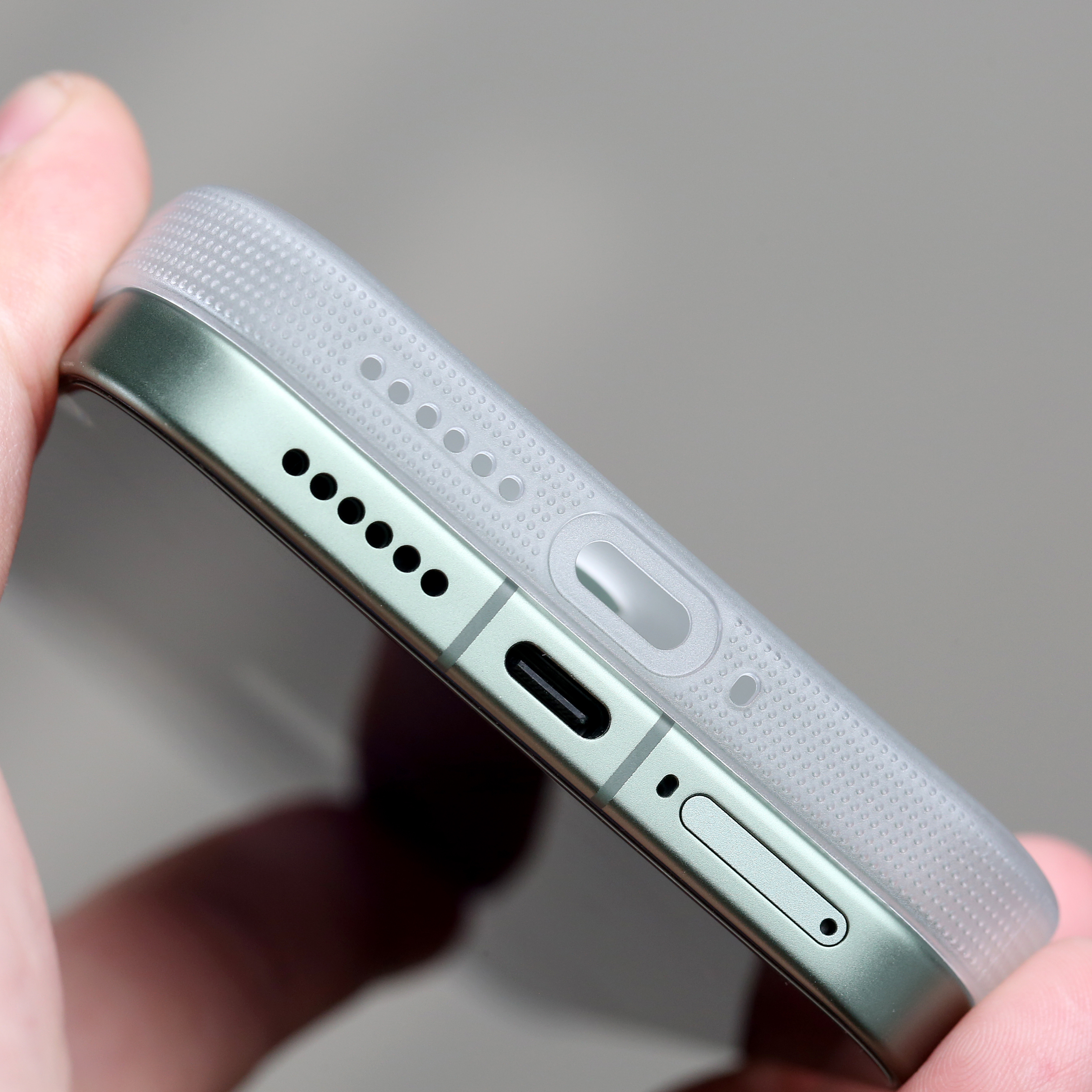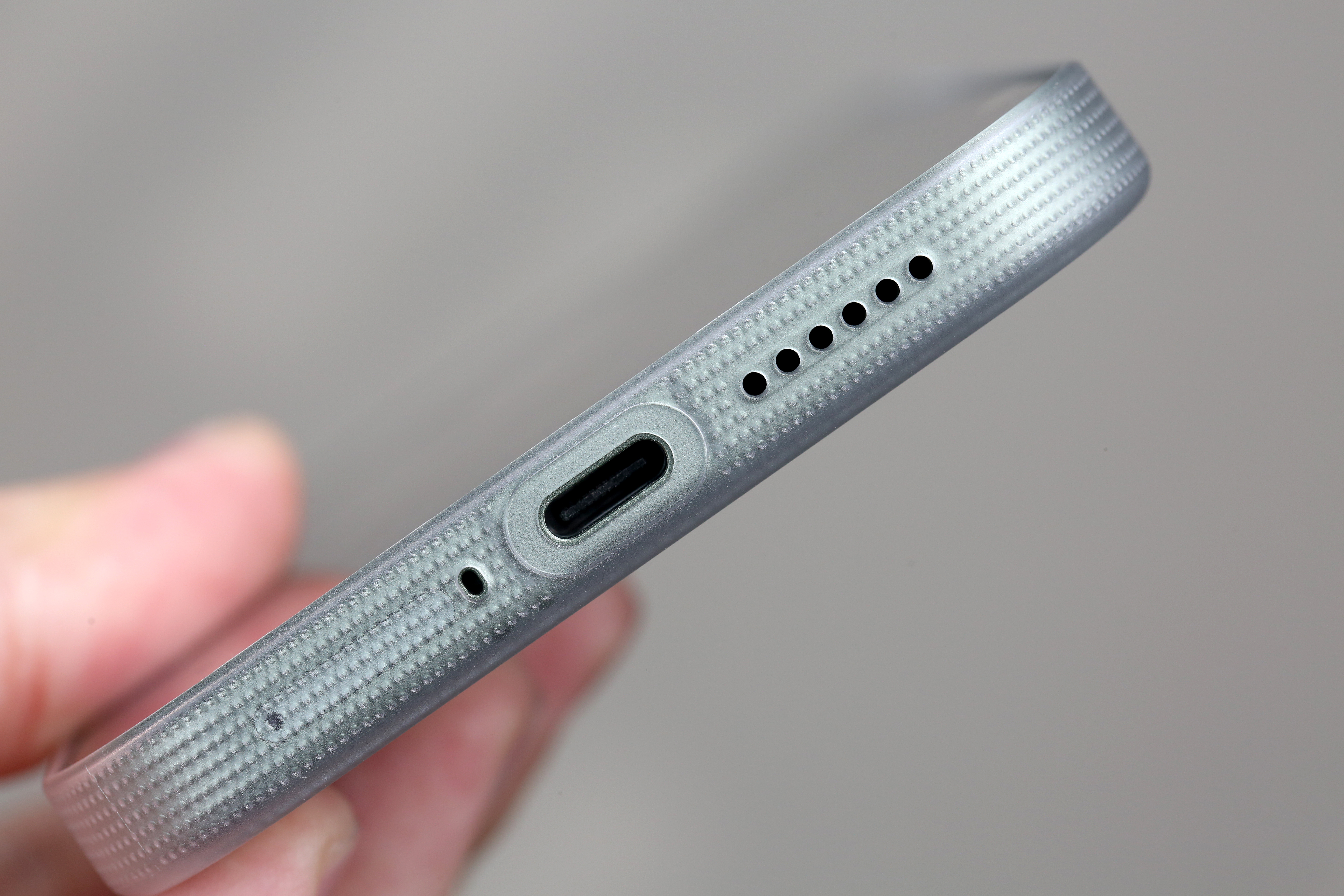 小米 17ProMax PC 斜隐充电口区域的精孔式防刮保护设计这小细节,我也很喜欢。 而且小拇指托着手机的时候,硌手感也会减弱一些