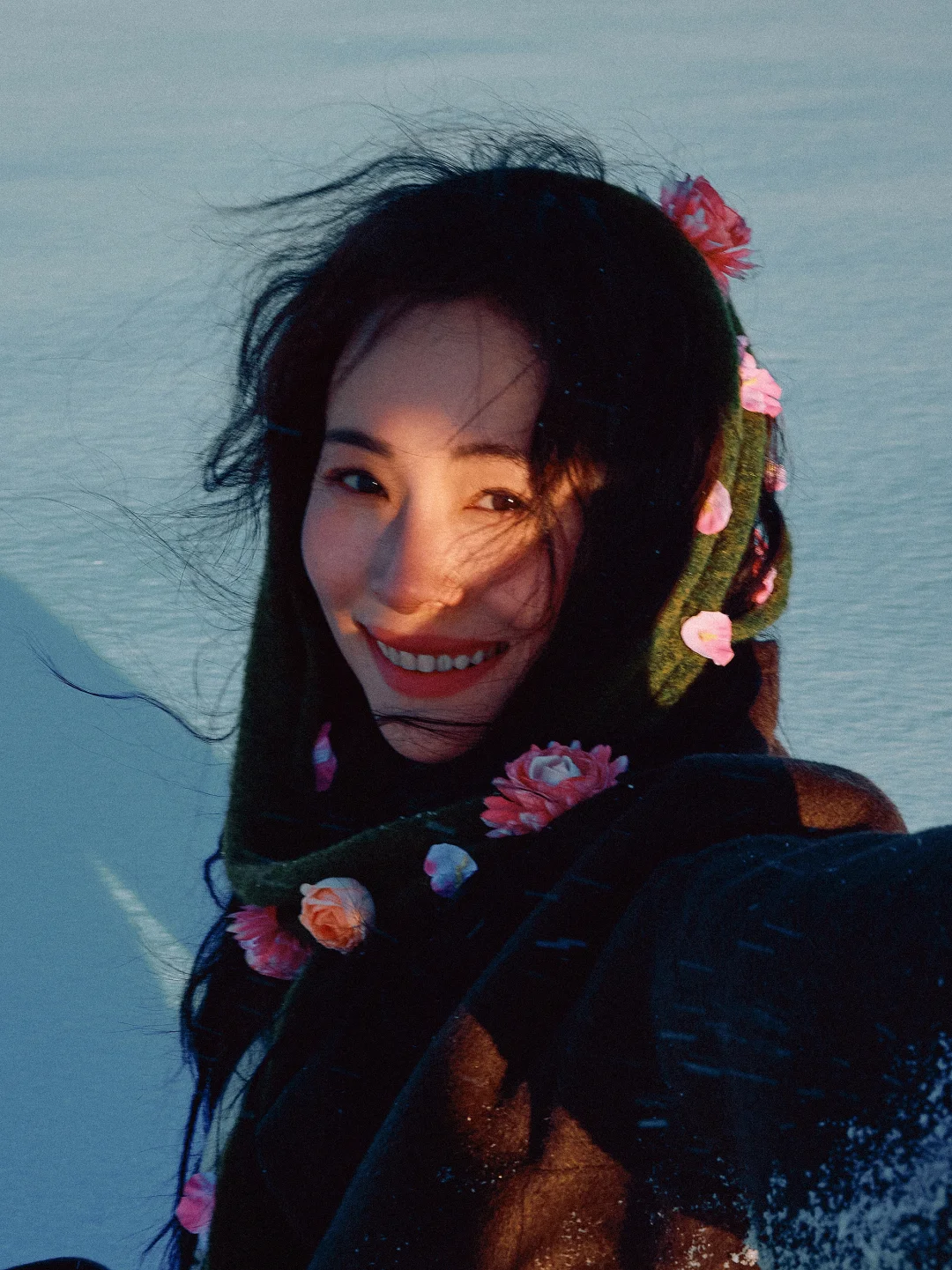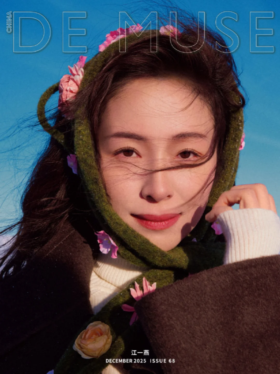 🔷『 DE MUSE X 我是江一燕 :纯白秘境 』 💙真的超米,江一燕好有氣靈 🧣來自我品牌WANG 「繁花縛頸」手工花卉羊毛圍巾