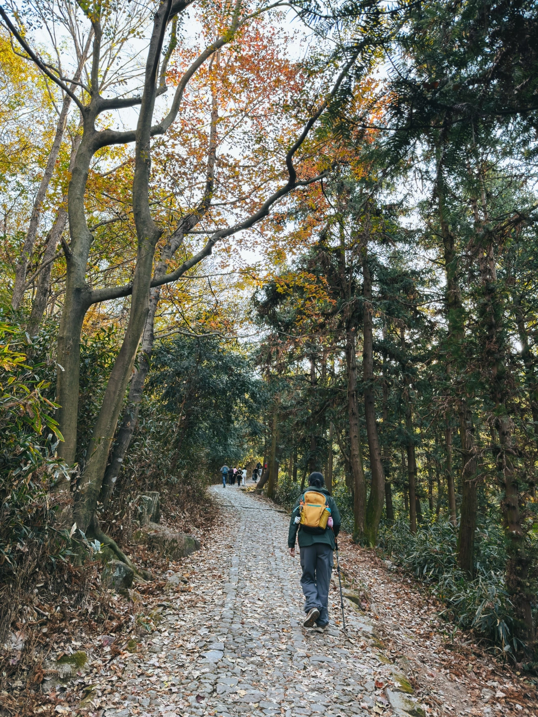[星R]北线上,南线下。全程没有台阶,膝盖友好。北线一路卵石铺筑的古道向上,坡度有急有缓,锻炼心肺的好线路。南线会潮湿一些,山里的部分都是土路,没有陡坡,有两个观景平台,最后走一段公路,今天的车不多