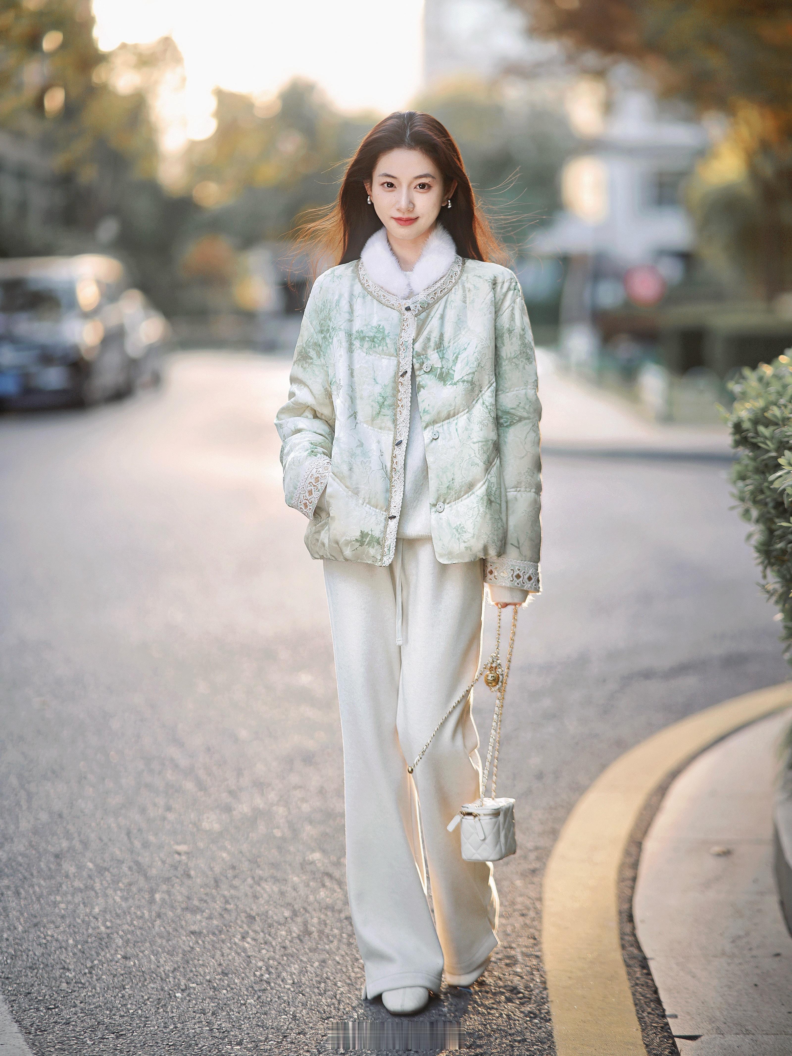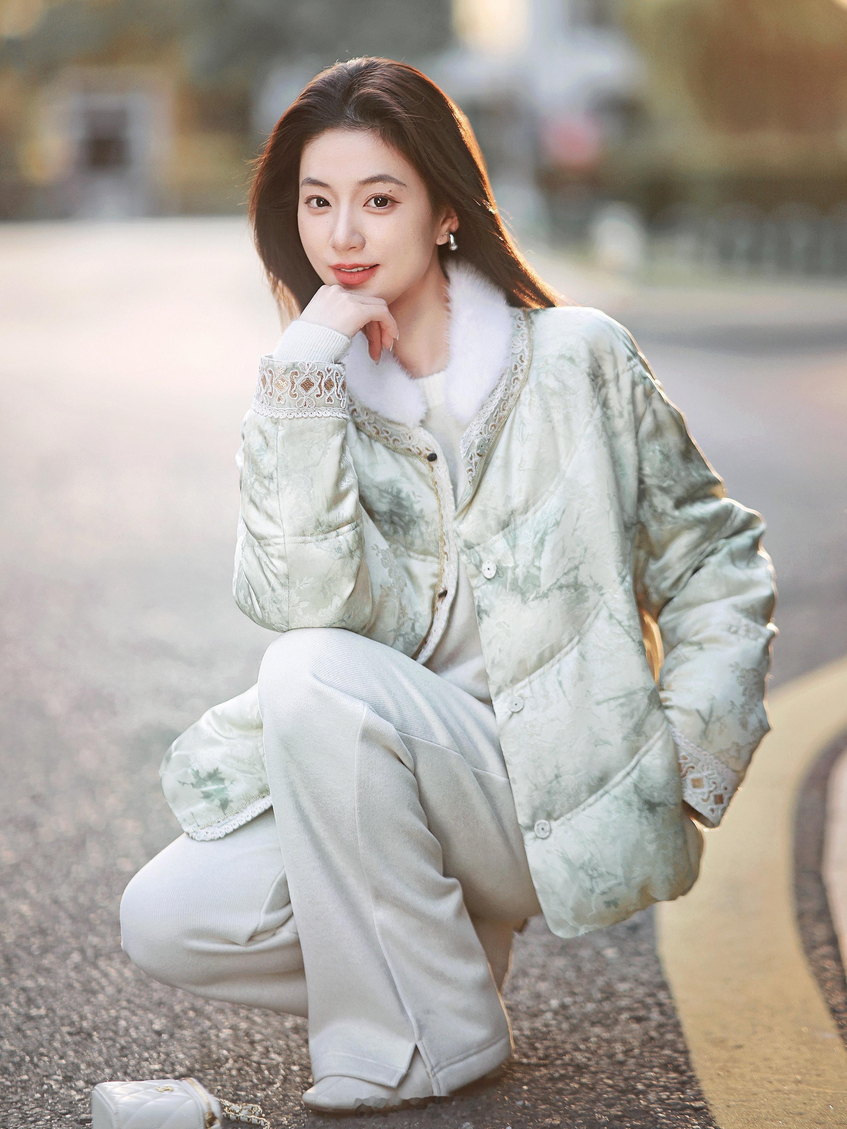 是谁钦点的国风来着?这不就来了~90鹅绒+水貂领/真丝印花 轻盈舒服又贵气再来绣花织带点缀 一下子轻松时髦了吧?