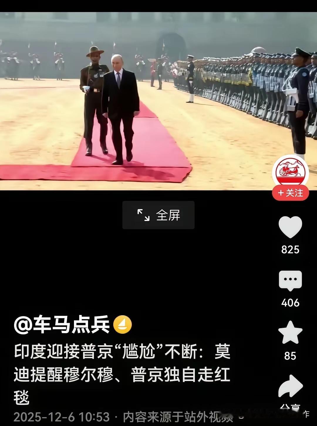 印度可真是紧巴巴地过日子啊。普京到访印度,迎接他的场景里,地面满是尘土,地毯是拼接而成的,颜色参差不齐,铺设得也歪歪扭扭。总让人感觉普京有些尴尬。 网友:印度低调节约不显摆,不为一时的风光花费,腐败的也少,韬光养晦,务实求进,交通以火车为主,住房多以棚户区为主。 其实很多时候,作为一个国家的外交礼仪,真不是如很多人说的那样随意,最起码的国际脸面还是应该有的,既是给对方首脑的尊重,也是给自己留一份尊重。印度虽说不太富裕,但也不至于此。
