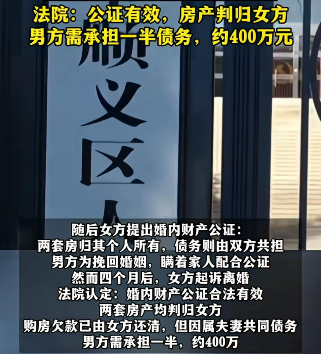 北京一男子为挽回婚姻,在妻子怂恿下瞒着父母将两套房公证给妻子,四个月后妻子起诉离婚,法院判决公证有效,两套房子归妻子,其中一套已还完房贷,另一套还有房贷,因为房贷是夫妻共同债务,丈夫应承担一半。近日,男子父母拒绝腾房,称:“这房子我们已经住了10多年了,这是我们在北京唯一的家。”有网友评论,这种女人她根本不想和你过日子,拿房子挽留,结果给了她房子还是不跟你过,居心叵切。