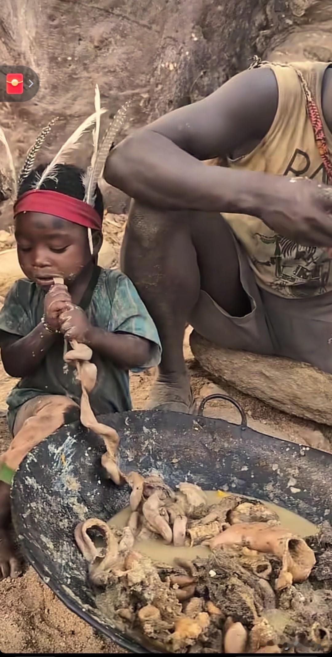 真正原生态。看上去他们吃的香、睡得香,不过,眼前这一口,怕不是每个人都能吃得下!非洲原始部落的生活。 我想,当初我们的先人,也是这样生活的吧!