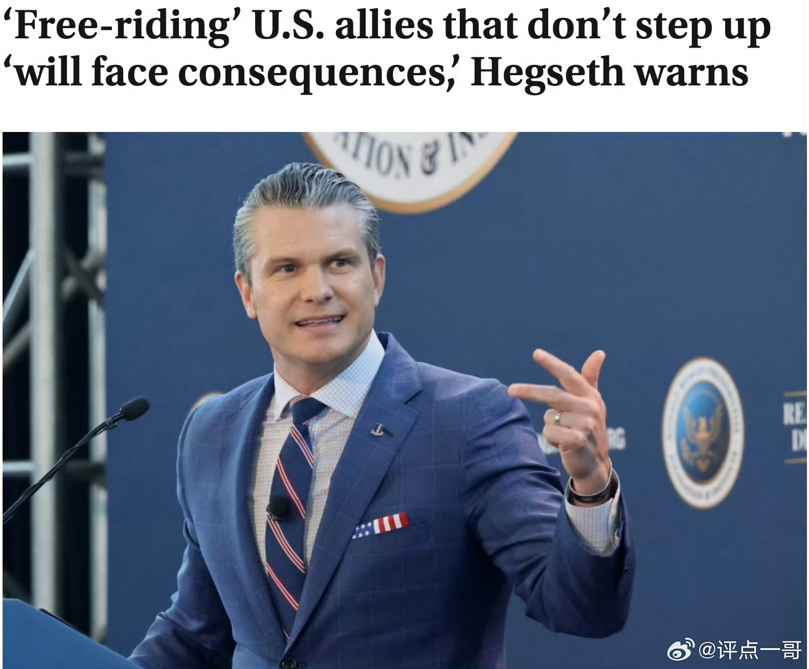 美日防务捆绑:霸权勒索与军国野心的肮脏共谋美防长赫格塞思的“警告”,哪是什么盟友间的善意提醒,分明是霸权国家的赤裸裸勒索!以“反搭便车”为幌子,逼日本将防务开支抬至GDP3.5%的离谱标准,一边用“特殊惠益”画饼,一边拿“付出代价”威胁,本质就是要把日本打造成亚太地区的“军火提款机”和“地缘棋子”,让盟友为美国的霸权私利买单。而日本的表现更显荒诞——高市早苗政府罔顾民生疾苦,将防卫开支推至11万亿日元,却仍填不满美国的欲壑。所谓“和平国家”早已沦为遮羞布,其骨子里的军国主义野心,恰在美国的施压中找到了扩张借口。一边是美国的霸权绑架,一边是日本的借势扩军,这场肮脏共谋不仅让日本经济不堪重负、民众利益被肆意践踏,更给亚太地区的和平稳定埋下巨大隐患。失衡的同盟关系里,没有共赢只有算计,没有和平只有危局。美国的勒索与日本的野心相互勾连,终将把自己拖入万劫不复的深渊!美防长警告日本美防长暗指日本搭便车将付代价