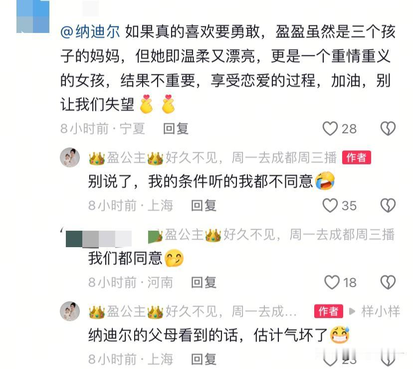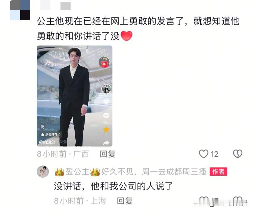 盈公主的追求者还真不少,之前有位认识多年的朋友一直追求,被盈公主拒绝,现在又有位帅气小伙子追求,小伙子已经喜欢她八个月,小伙说,如果可以,他愿意把自己的积蓄都给盈公主。 这位小伙是一位模特,长相清秀,据他自己说,他没有过女朋友,至今不敢跟盈说话,从盈公主第一次分手他就已经等了几个月了。 这是盈公主第二次分手,他想鼓起勇气表白,已经跟盈公主公司的同事说了,还不敢当面跟盈公主表白,只是在自己的账号表露心声,不知道后续会不会表白成功。