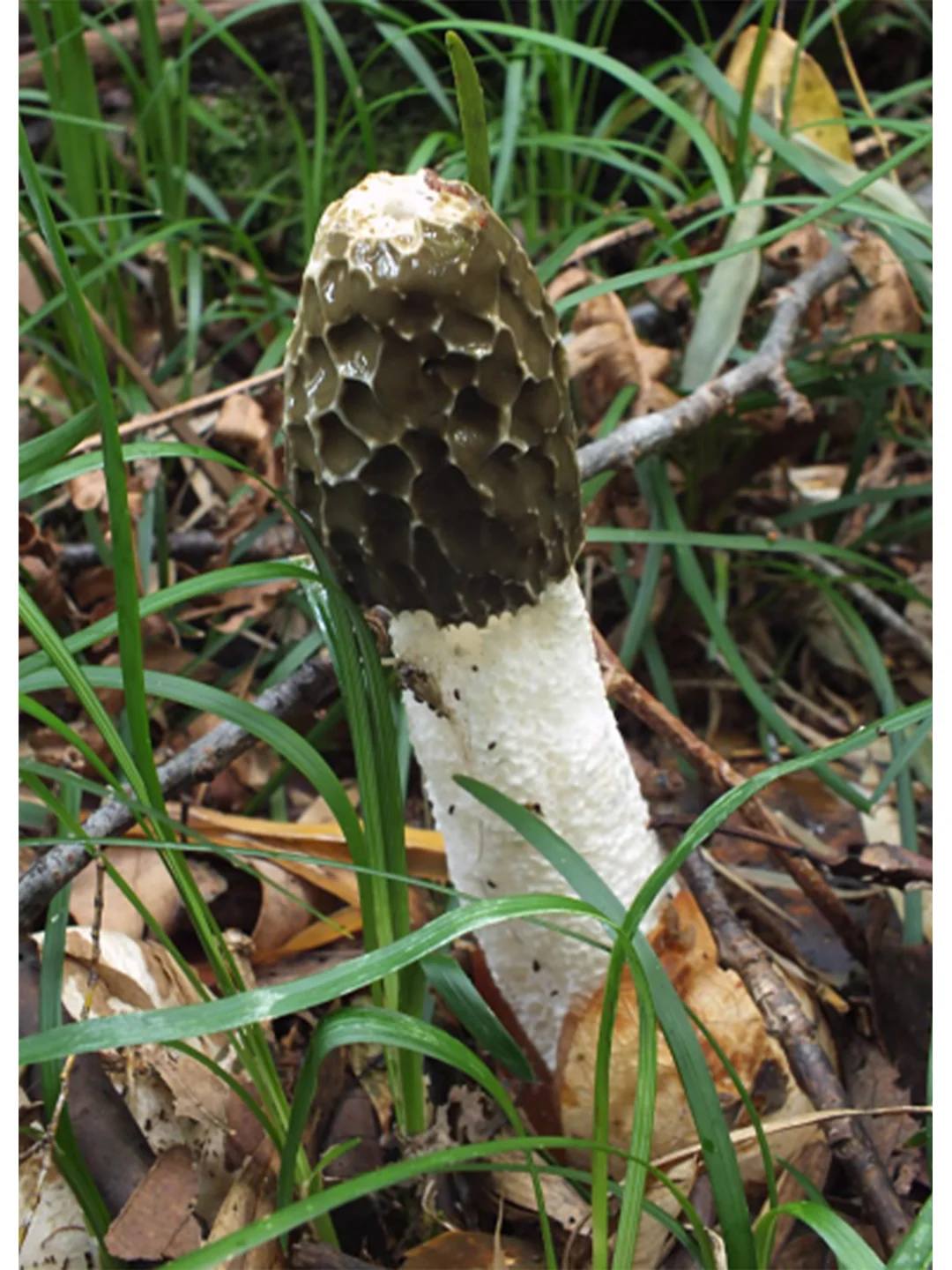菌盖:白鬼笔没有传统意义上的菌盖,而是顶端有一个圆形或不规则形状的菌盖。